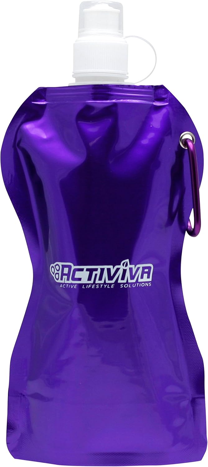 USA Merchant | Collapsible Reusable Water Bottle with Carabiner Clip Light Weight Leak Proof Foldable Drinking Water Bottle Non Toxic BPA Free - 16.9 oz 4 Pack (Pink, Purple, Red, Clear)