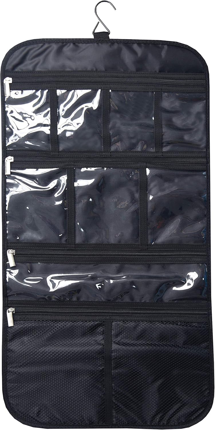 - ✔ KEEP ALL YOUR COSMETICS & TOILETRIES ORGANIZED: This folding toiletry bag features up to ten clear plastic, zipper secured or mesh pockets, enough to hold all your personal items and essentials. It also has a strong METAL HANGING HOOK, to ensure even easier and more practical access to your accessories.
