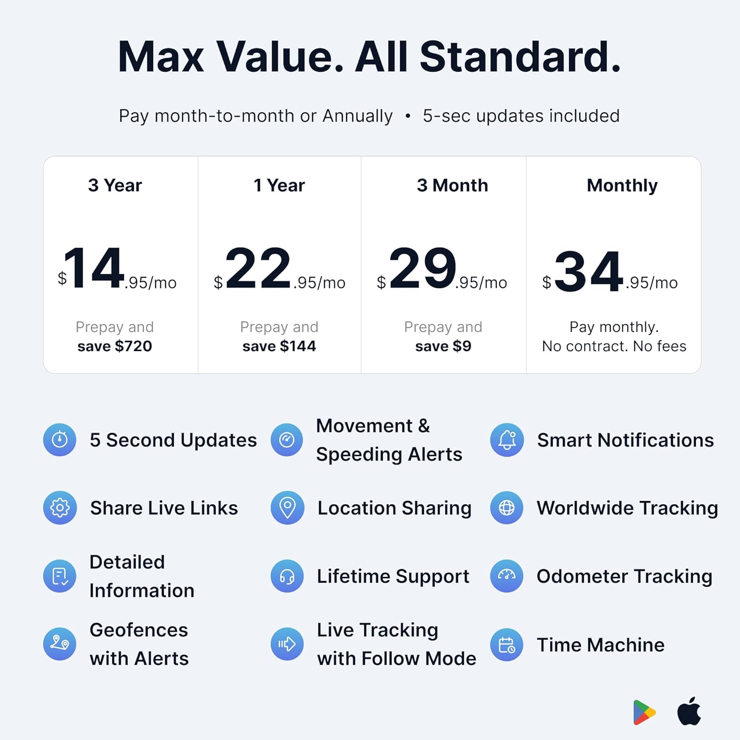 - LOW COST PLAN REQUIRED: Quickly download our easy-to-use app. Activate the device, choose your plan, and start tracking. Subscriptions as low as $14.95/mo. Get 24/7 support on GPS trackers with an active subscription. Worldwide coverage - update Network Mode in app before leaving the country.