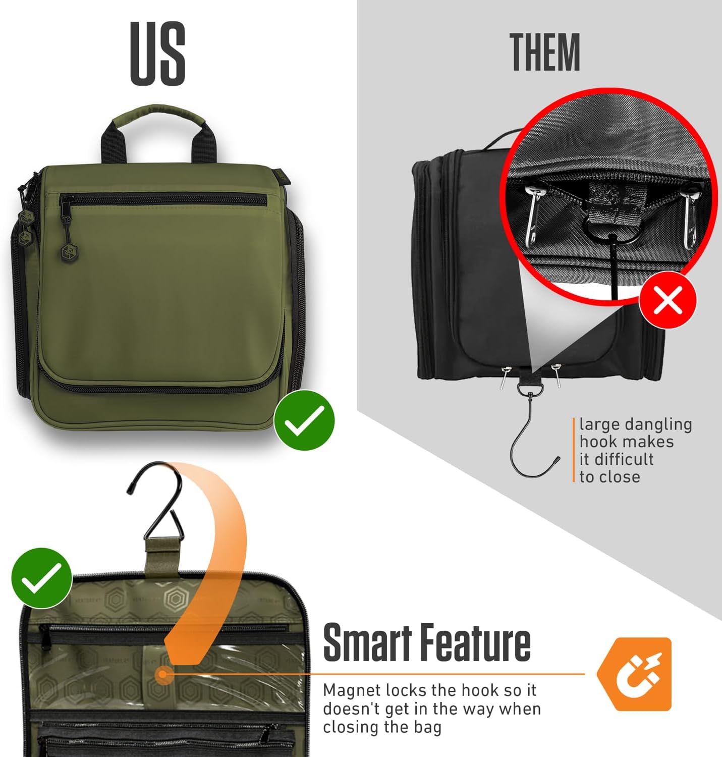 VENTURE 4TH Hanging Travel Toiletry Bag for Women & Men - Travel Organizer with Expandable Compartments & Removable Clear Pouch for Toiletries (Forest Green)