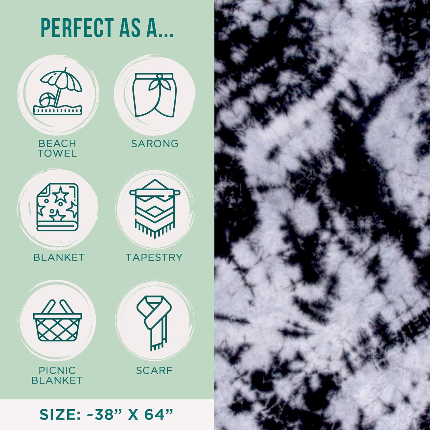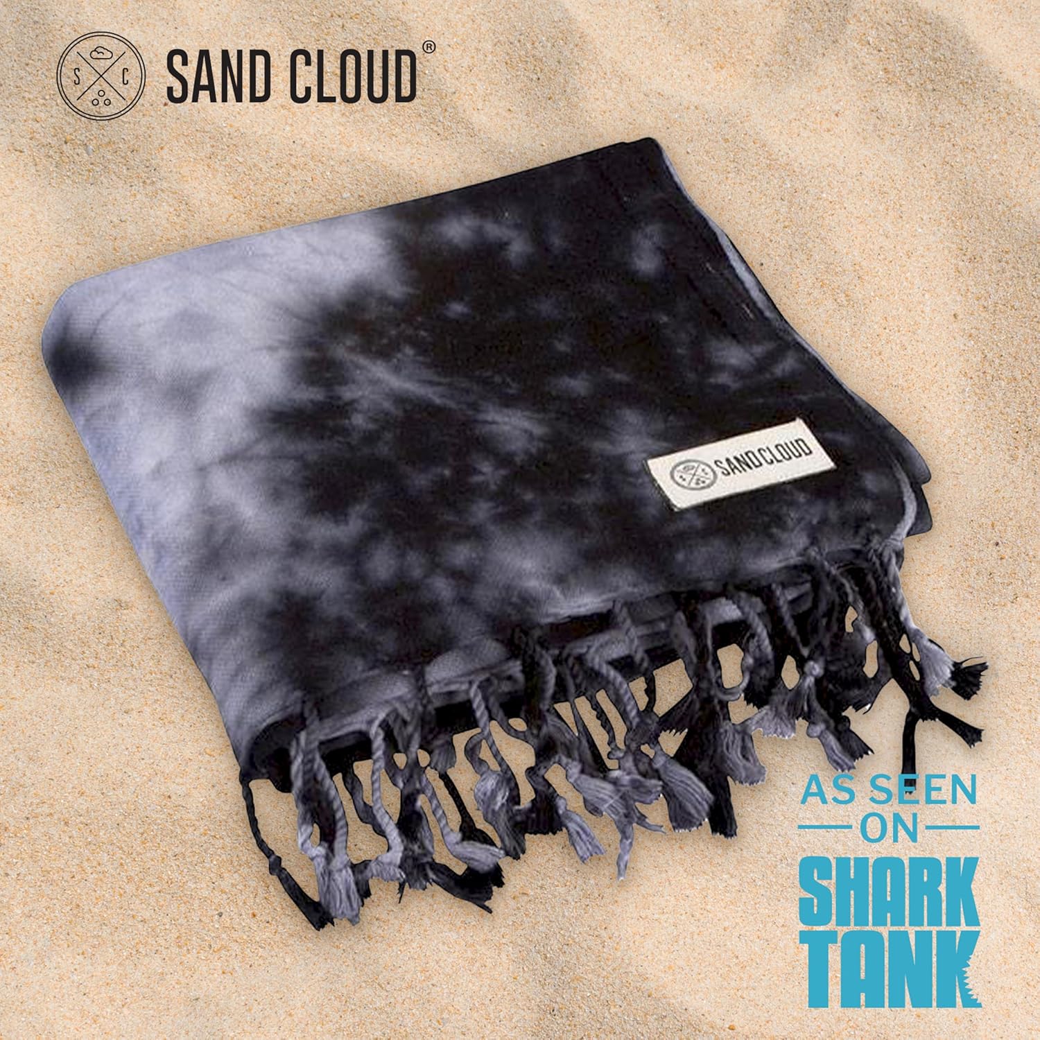 Sand Cloud Turkish Beach Towel - Sand Free - 100% Organic Turkish Cotton Yarn - Quick Dry Towel for Beach, Picnic Blanket or Throw - As Seen on Shark Tank - Tie Dye (Black Acid Wash)