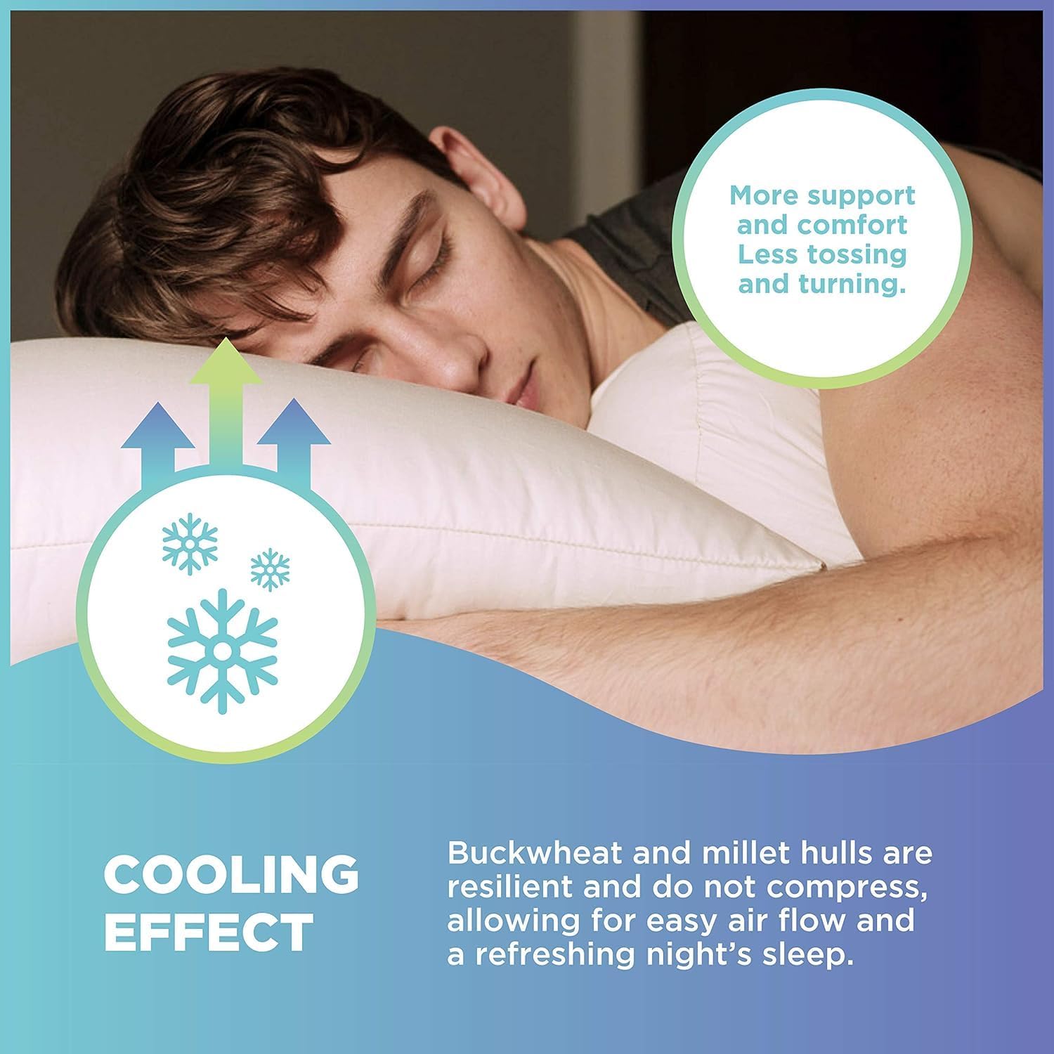 - šššššššššššššš & šššššššššš: Crafted with natural millet hulls, this organic cotton fabric pillow is free from common allergens and harsh chemicals, making it a safe and gentle option for sensitive sleepers. The breathable fill encourages steady airflow throughout the night, helping to regulate temperature and keep you cool, dry and comfortably supported as you rest.