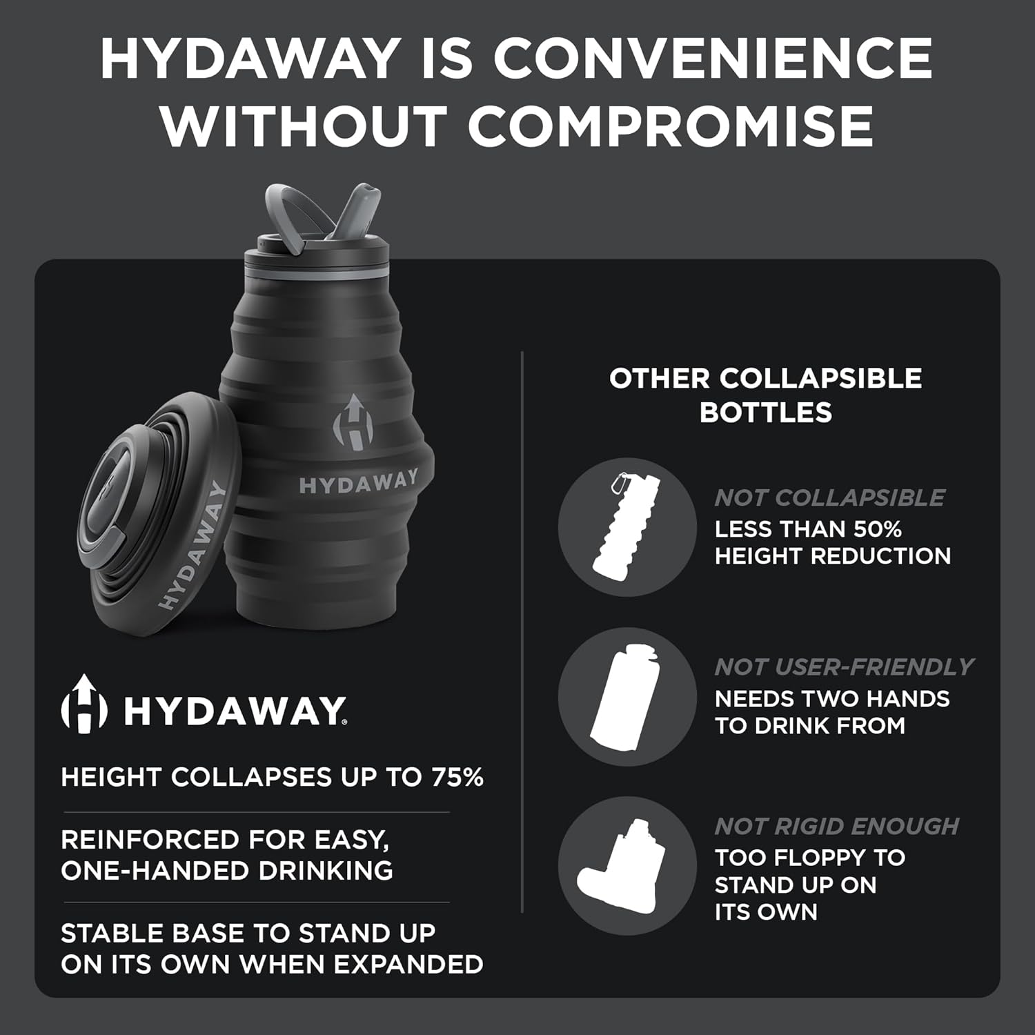 - COLLAPSIBLE & COMPACT DESIGN: Folds down to just 1.5 inches when empty - perfect for travel, backpacks, gym bags, and minimalist lifestyles.