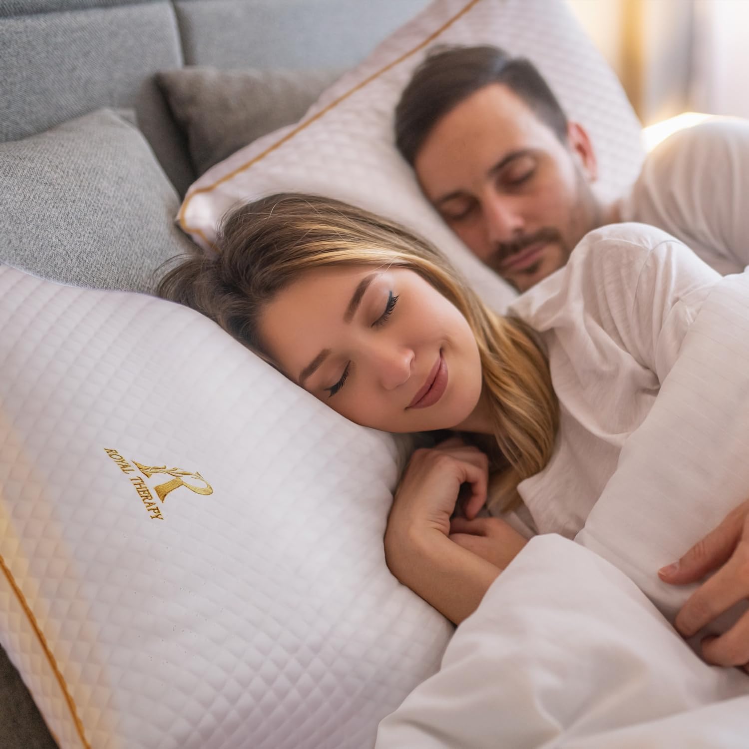 - Best spinal alignment – our luxury cervical firm pillow gives greater resistance under the heaviest parts of the head and equally supports the lighter more pressure sensitive neck area. Royal Therapy memory foam pillow helps reduce tossing turning and discomfort. It allows your muscles to relax properly offering natural spinal support to your body adjusting to your unique shape promoting a deep restful sleep.
