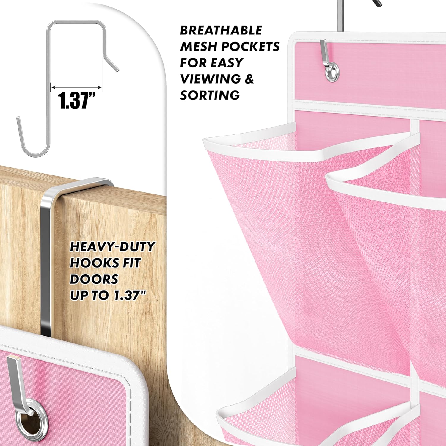 - Durable & Easy to Hang: Heavy-duty metal hooks rest securely over standard door tops without wobbling or slipping. Fits doors up to 1.37" thick with no tools or drilling required for setup