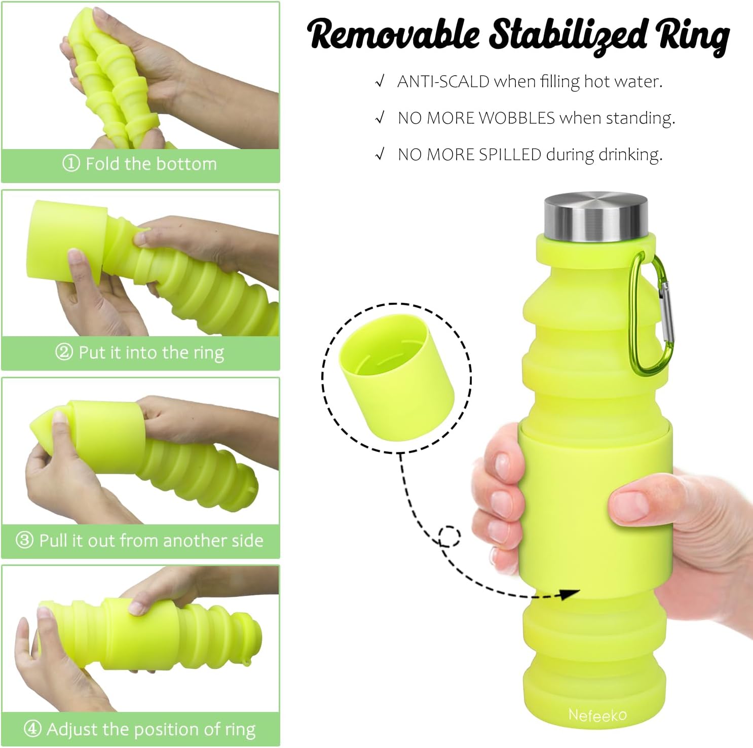 Nefeeko Collapsible Water Bottle, Reuseable BPA Free Silicone Foldable Water Bottles for Travel Gym Camping Hiking, Portable Leak Proof Sports Water Bottle with Carabiner