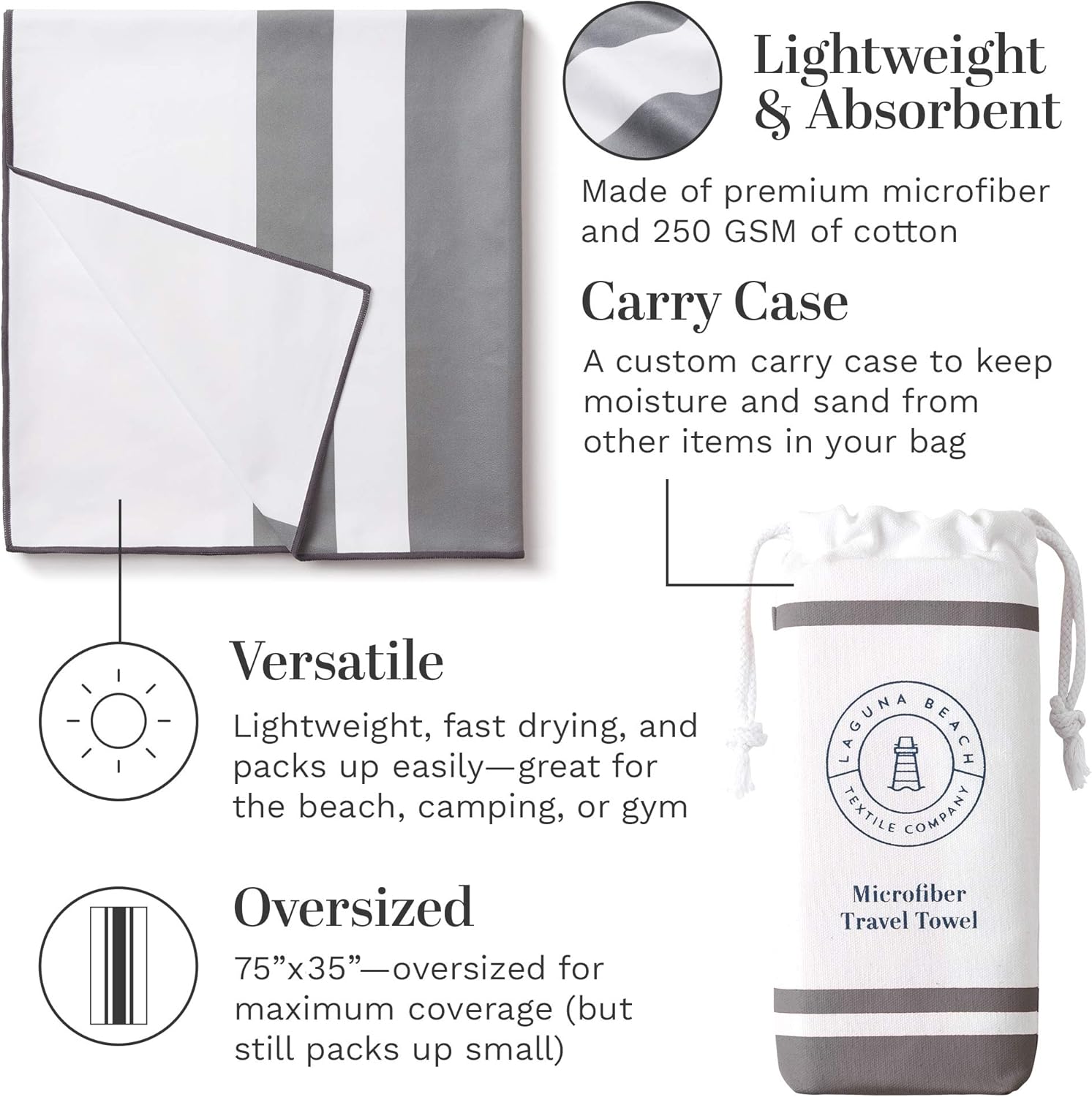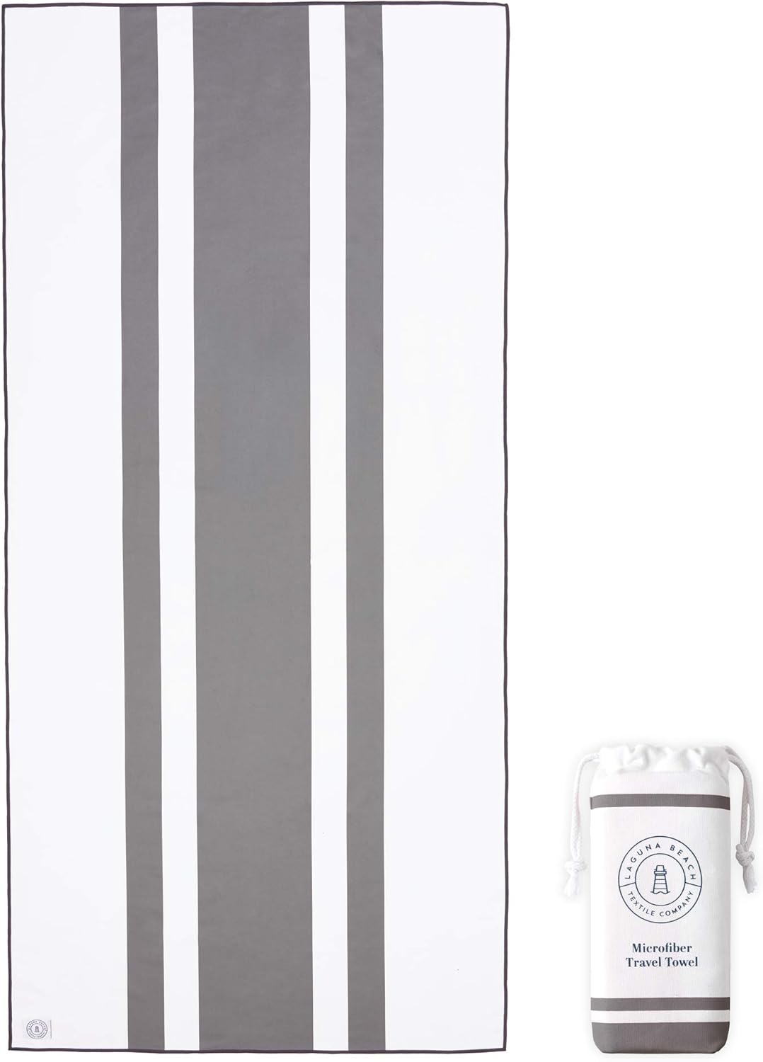 Gray Microfiber Beach Towel by Laguna Beach Textile Co - Sand Free, Light Weight Striped Pool Towel - Perfect for Yoga, Gym, Beach, Pool - Extra Large, 35" x 75" - Quarry Gray