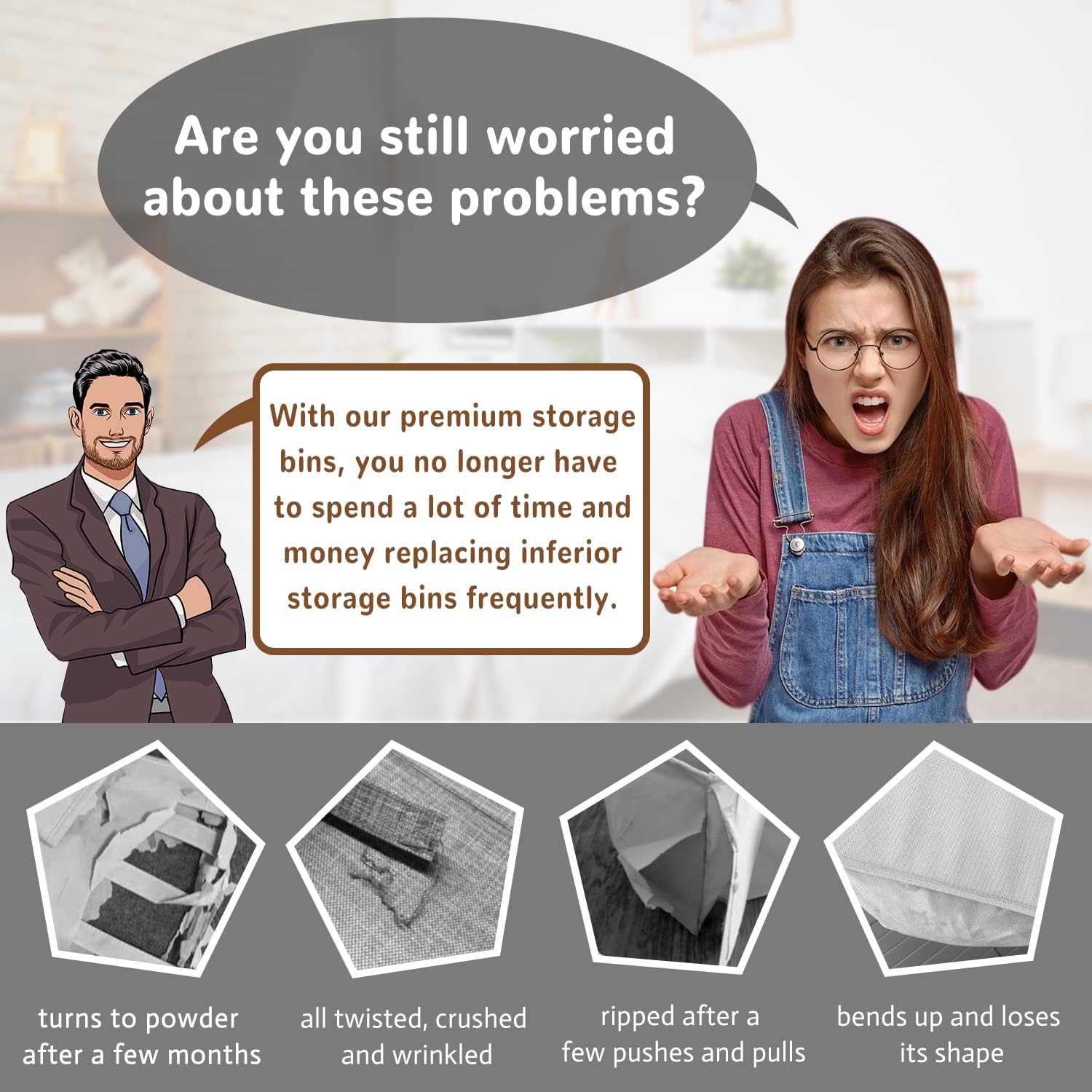 - Two metal handles, firm inserted cardboard and thick fabric make the bins 3 times sturdier and more long lasting than cheap bins – the best cost of the value