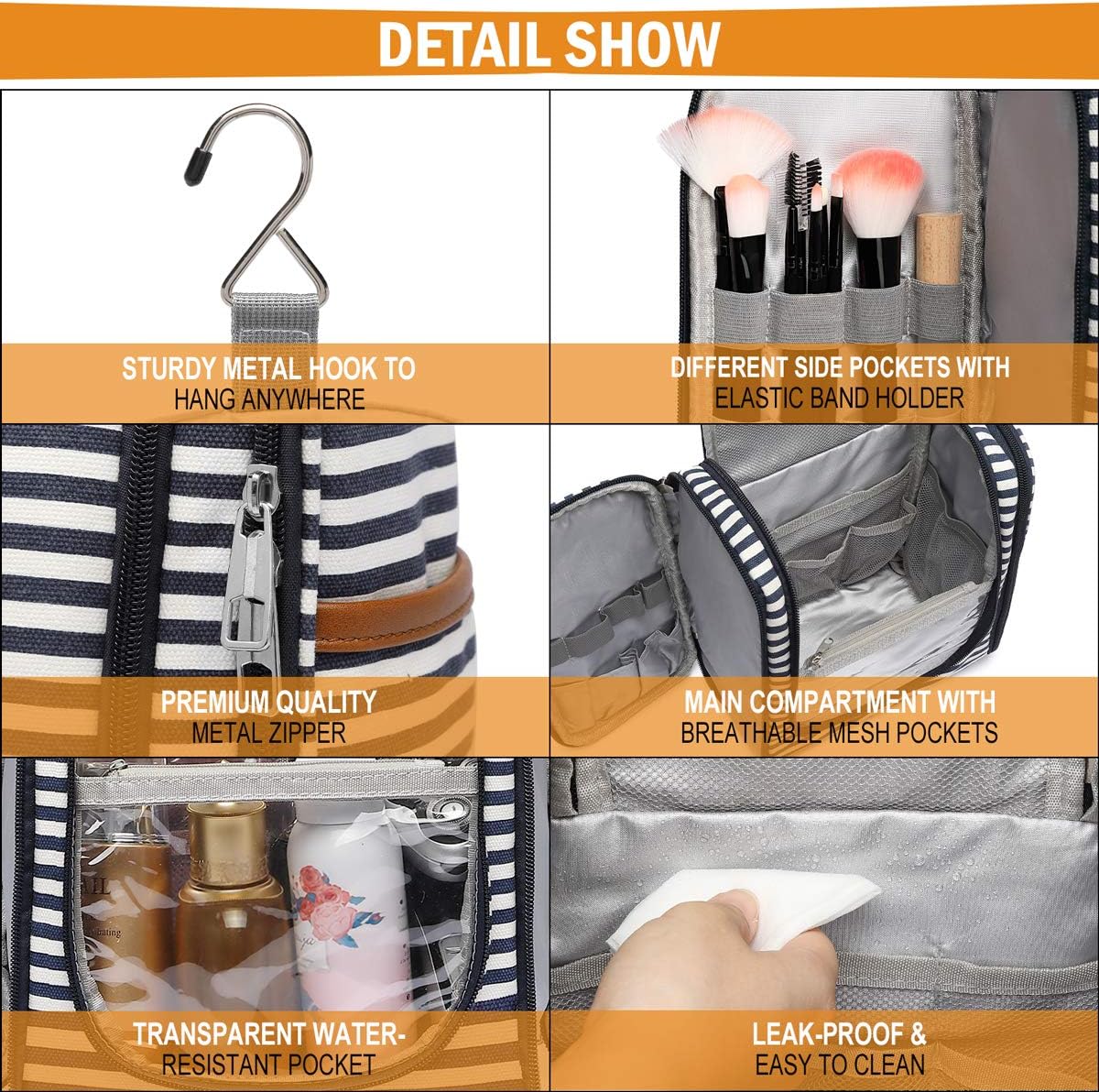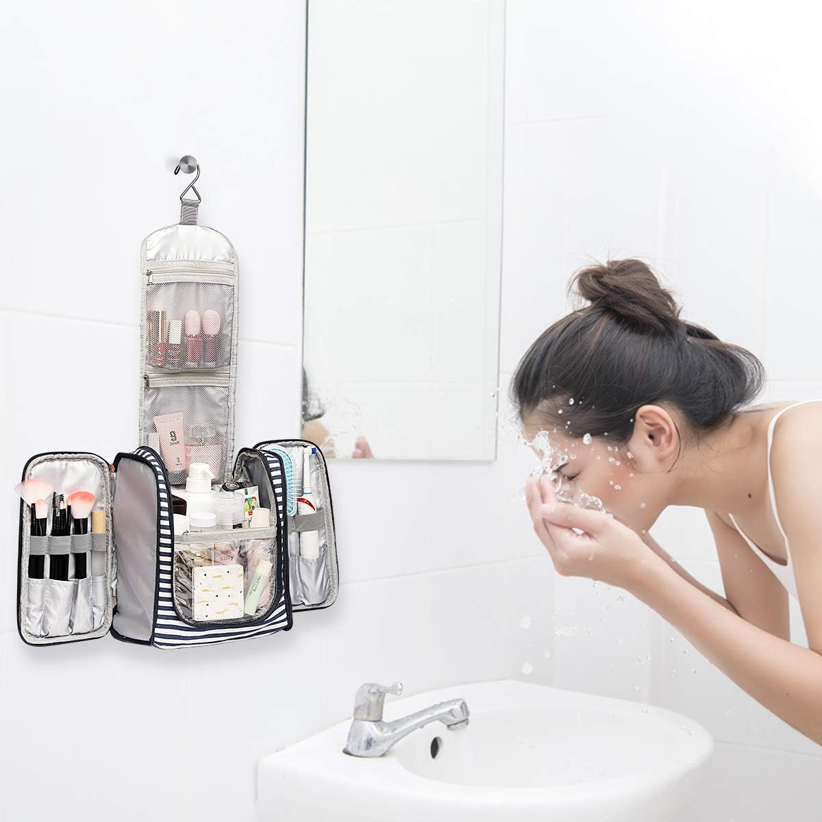 - Sturdy Hook Design - Buit-in hook allows hanging the toiletry kit from towel rack, coat hook or whereever is available, making your toiletries and cosmetics displayed well for easy access and save space as well.