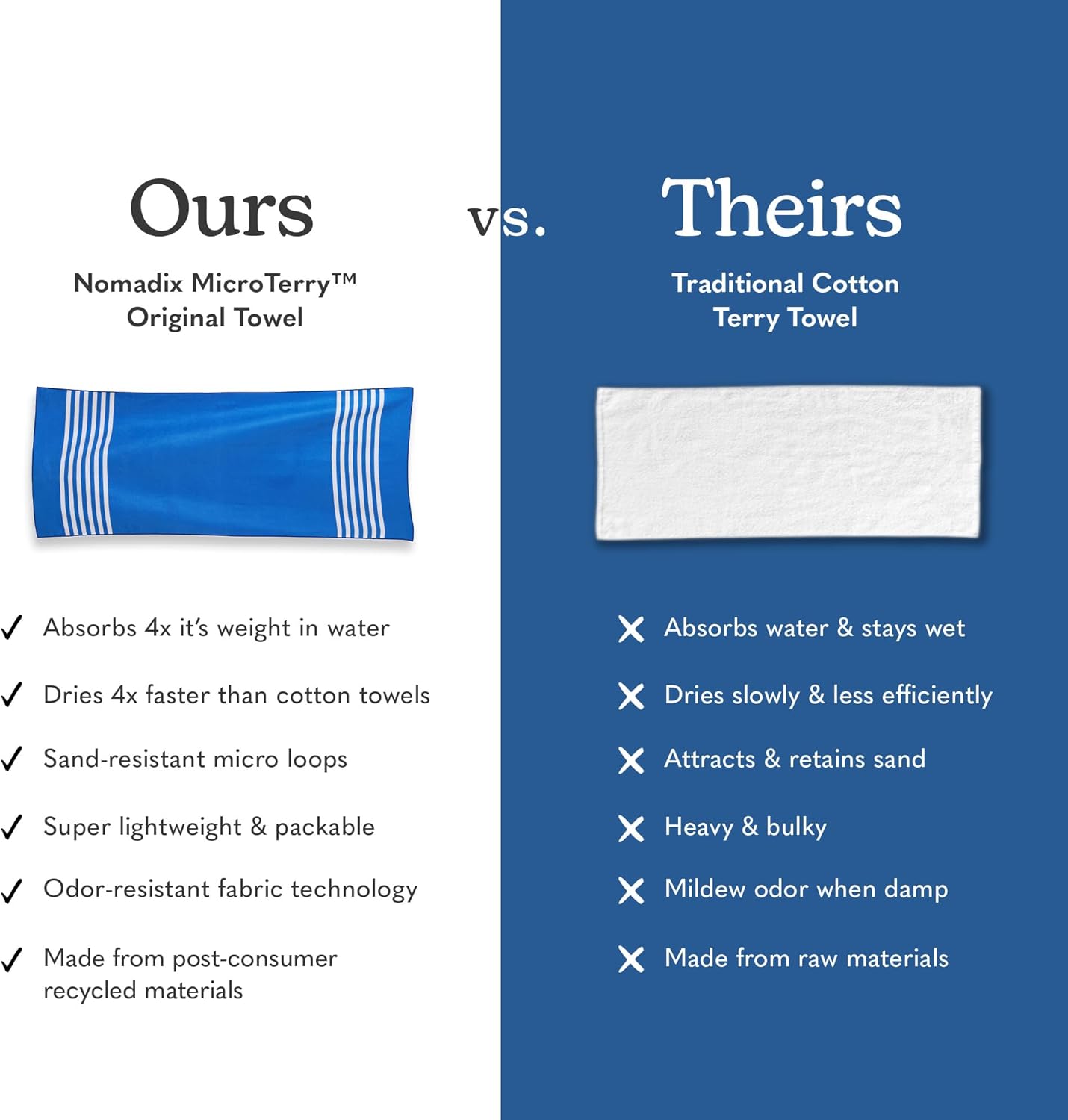 - Super Absorbent MicroTerry Fabric: Our MicroTerry Fiber is made with small loops, which means that it is super absorbent, absorbing 4x more than regular cotton towels.