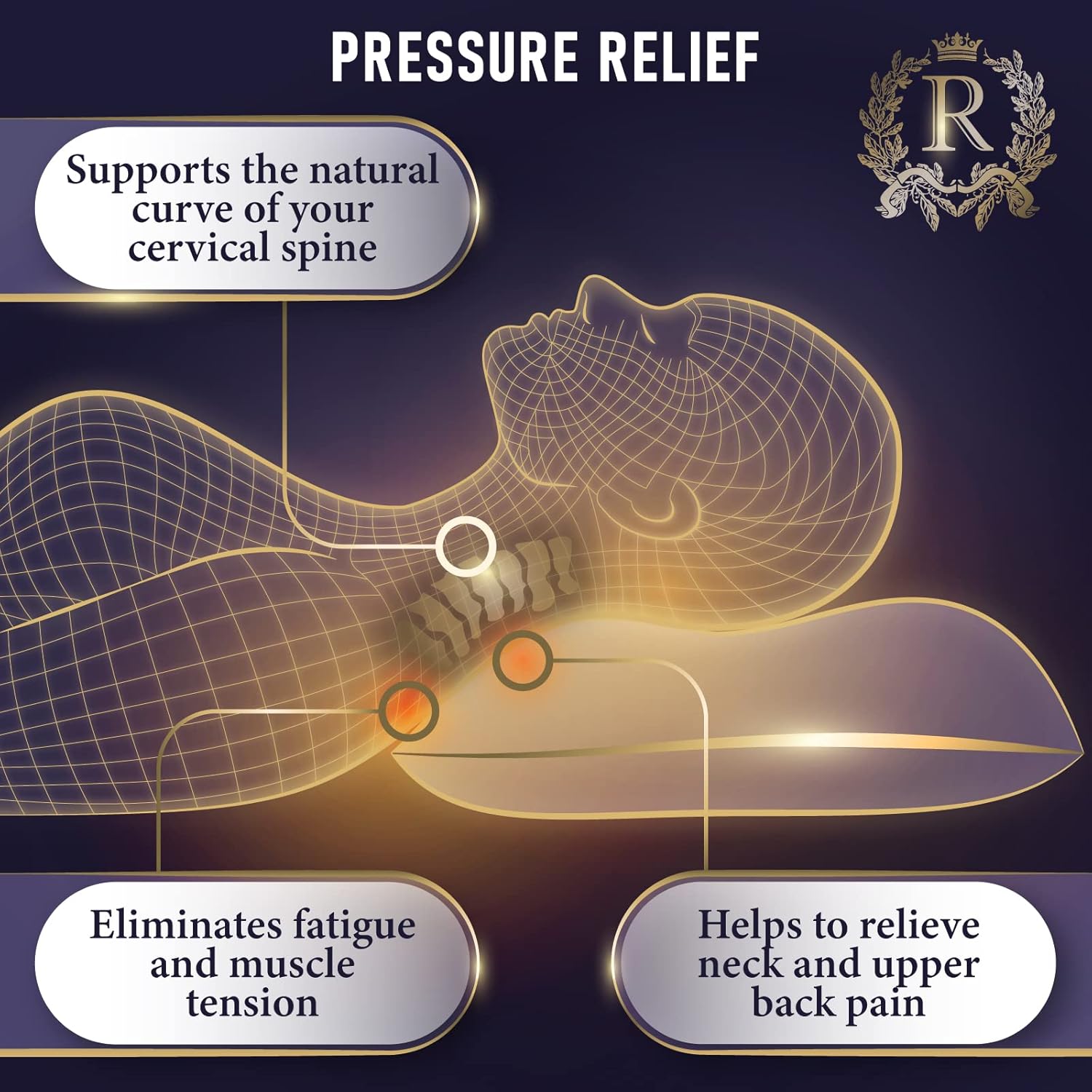 - Best spinal alignment – our luxury cervical firm pillow gives greater resistance under the heaviest parts of the head and equally supports the lighter more pressure sensitive neck area. Royal Therapy memory foam pillow helps reduce tossing turning and discomfort. It allows your muscles to relax properly offering natural spinal support to your body adjusting to your unique shape promoting a deep restful sleep.