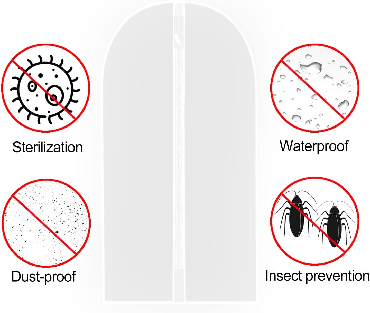 - Make Closet Neater - Garment bag made of EVA material, soft, dust-proof and water-proof. With these suit protector garment bags your wardrobe will look neat and beautiful, keeping your favorite clothing fresh and wrinkle free