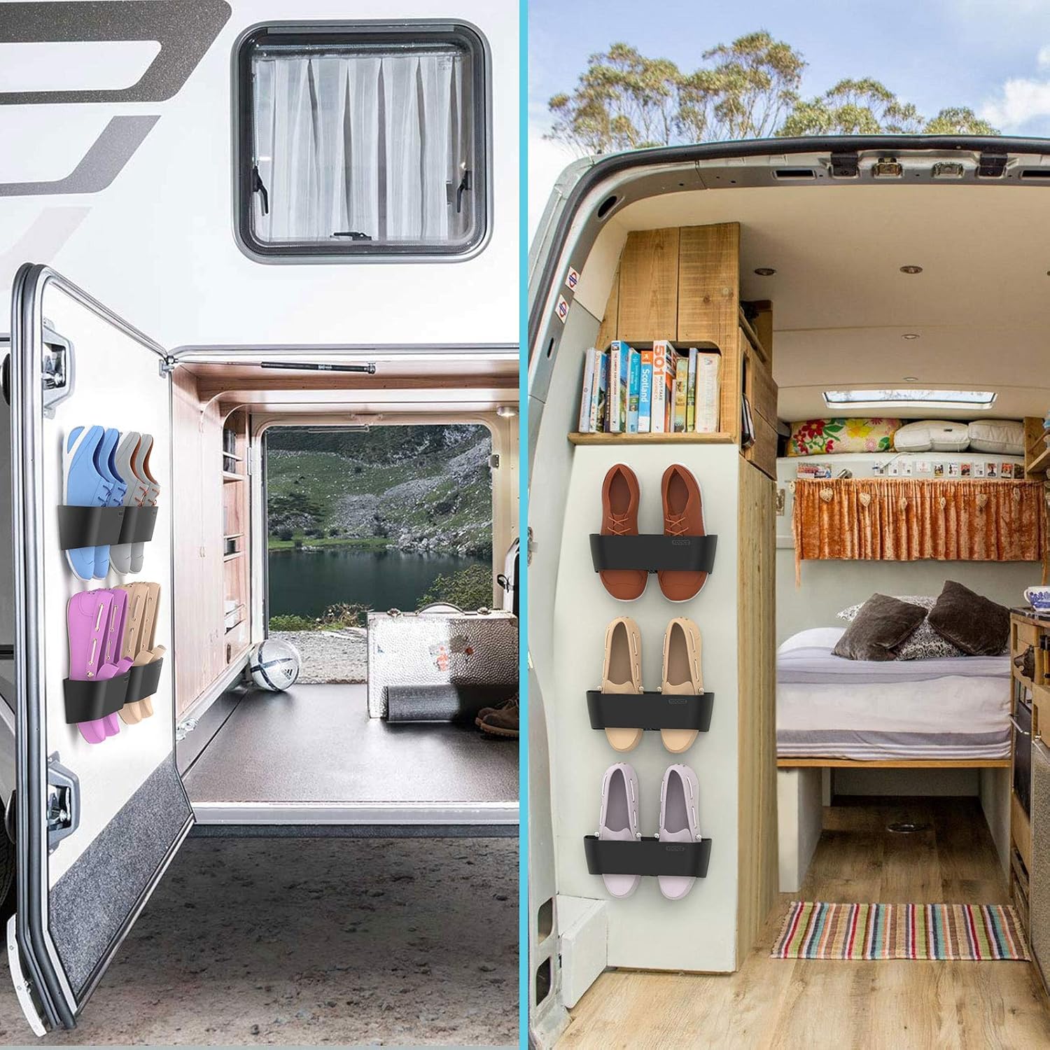 Wall Mounted Shoes Rack 6Pack with Sticky Hanging Strips, Plastic Shoes Holder Storage Organizer,Door Shoe Hangers (SM03-Black-6)
