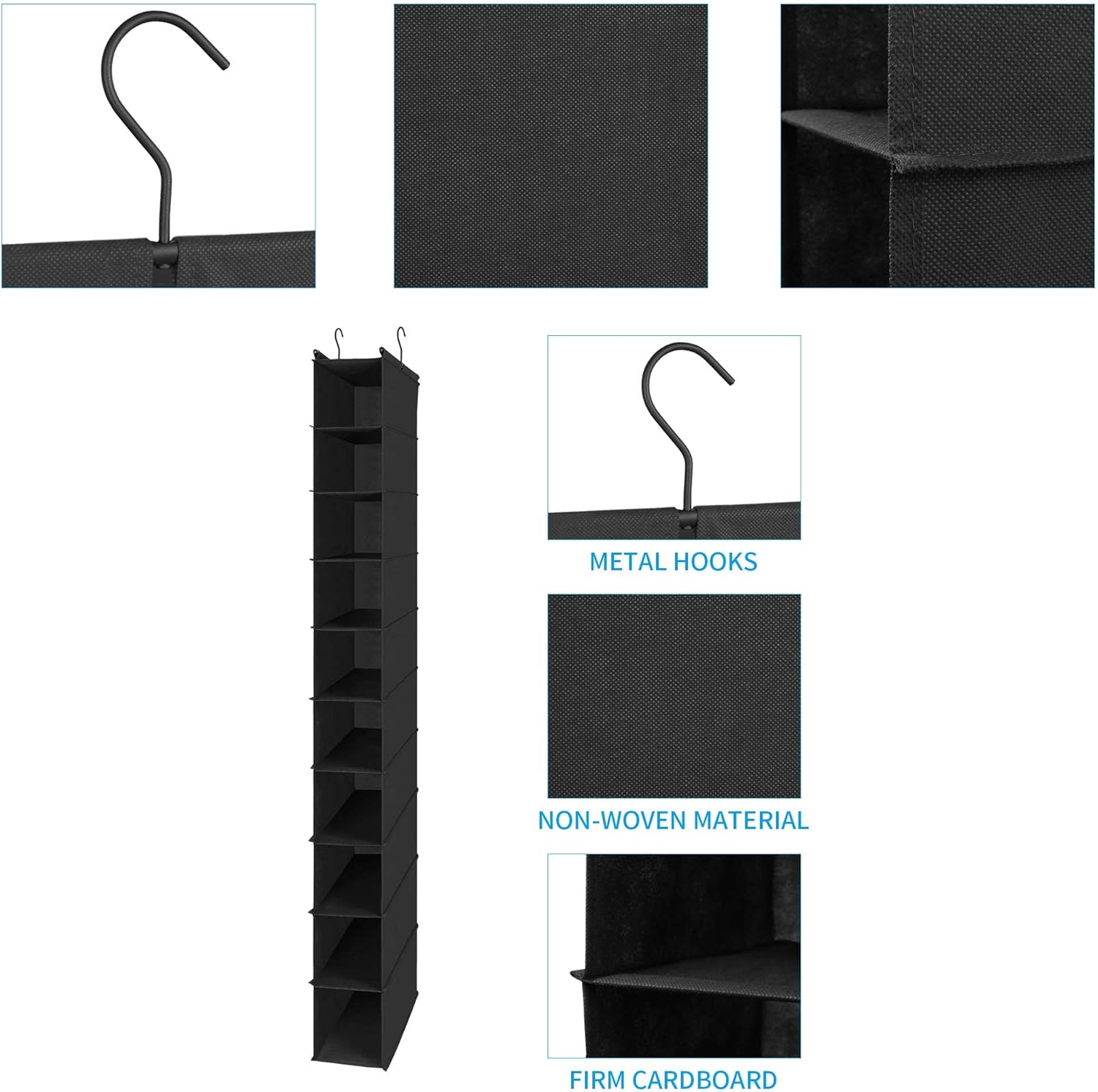 - Multipurpose: The hanging closet organizer is perfect for organizing closet, bedroom, laundry room, play room, college dorm room, used for small items like shoes, lingerie, socks, makeup, toys, office supplies, pet supplies and more.