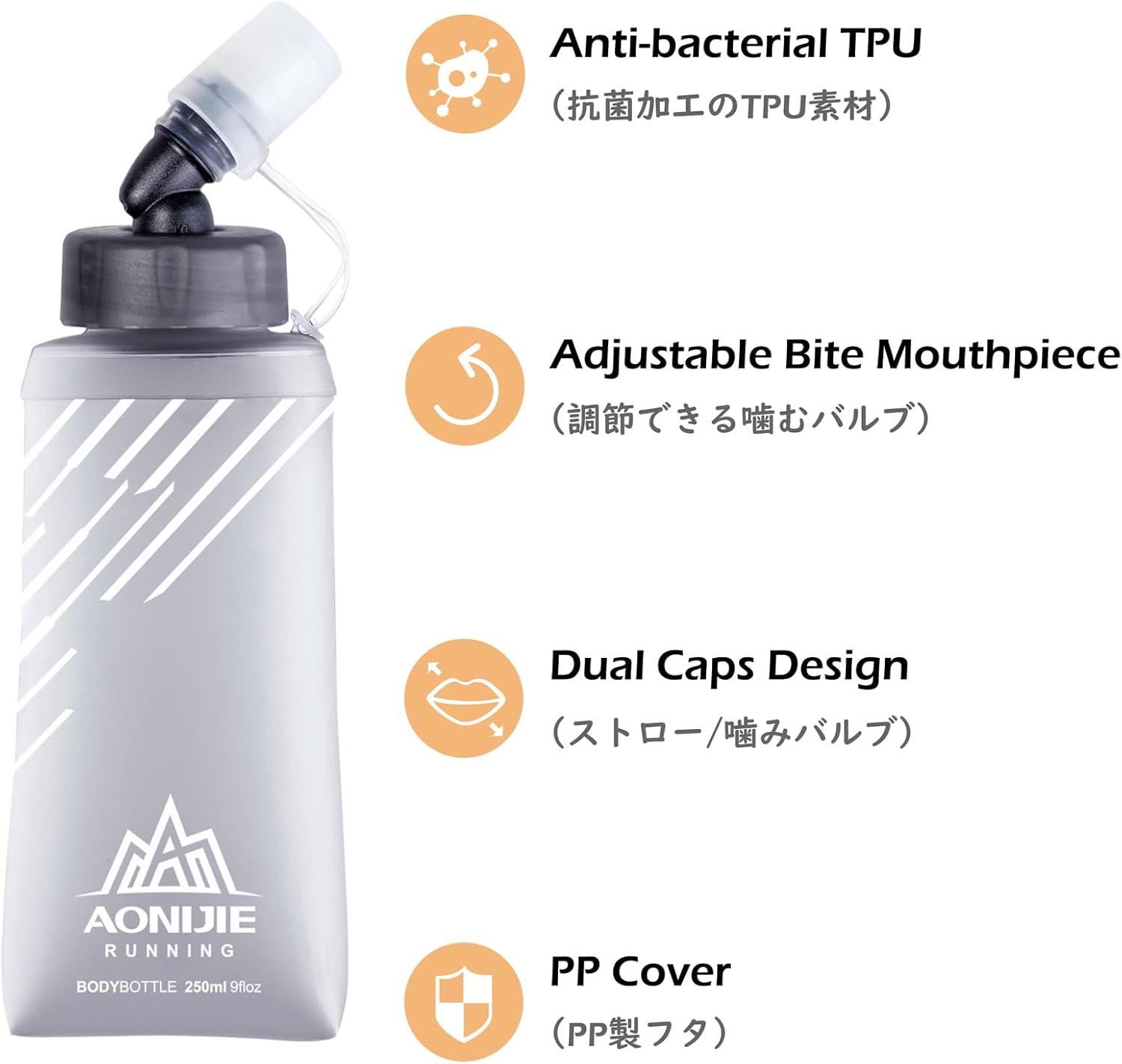 TRIWONDER Water Bottles TPU Soft Flasks Collapsible Running Flasks for Hydration Pack Backpack Hiking Cycling (Gray - 500ml - Pack of 2)