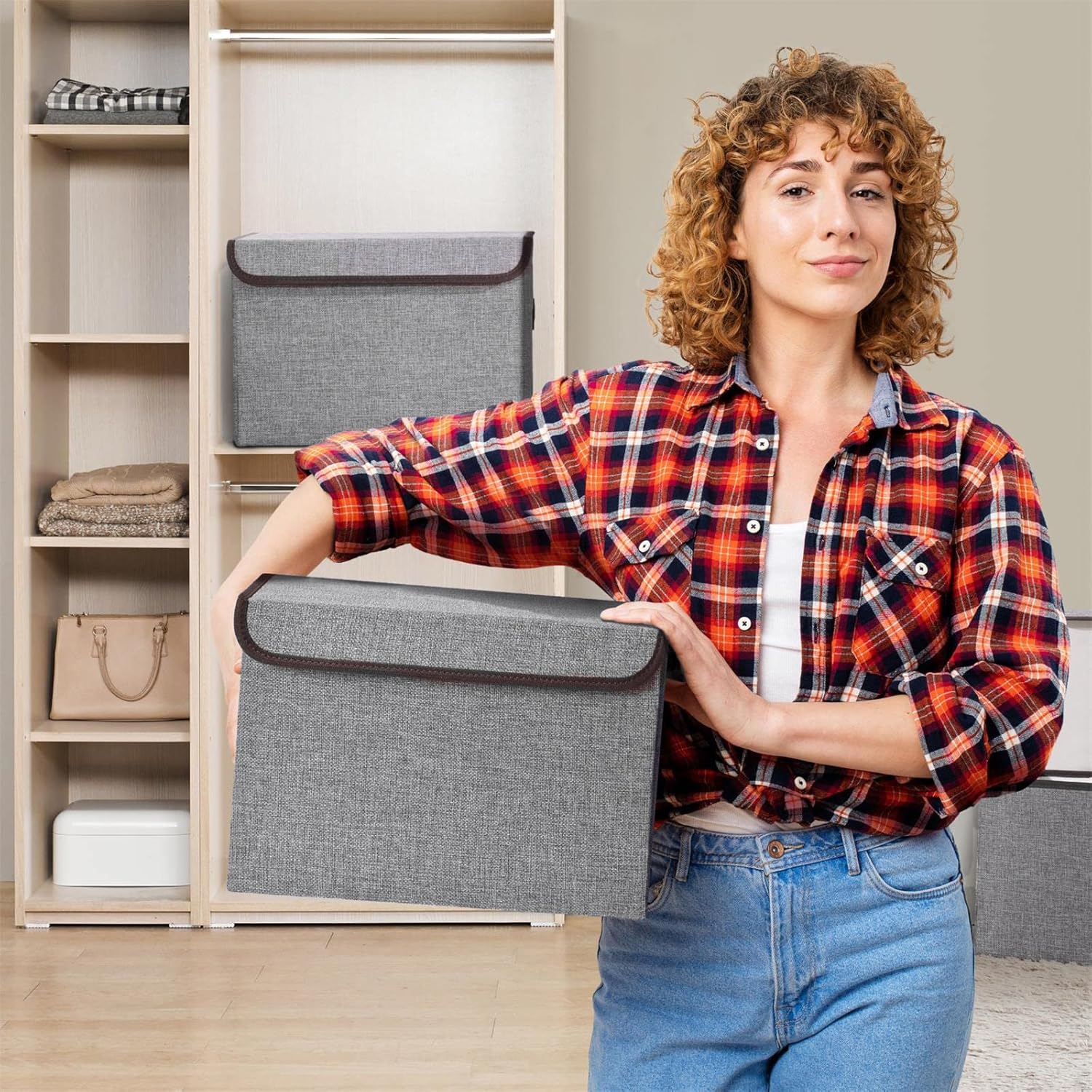 - 【Premium Quality】 - This storage bins with lids are made of durable and breathable linen fabric with the high quality cardboard on the sides and bottom. The inner 2.2mm thick cardboard maintains fabric storage box shape and structural integrity. Both handles are sewn through cardboard to make this decorative storage boxes rigid enough to hold a heavy load.