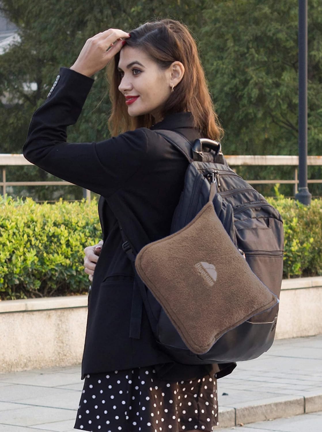 - Backpack clip included in the package: With the backpack clip / carabiner, you can clip this blanket pillow to any backpack or to any other luggage - with the soft taupe travel blanket.