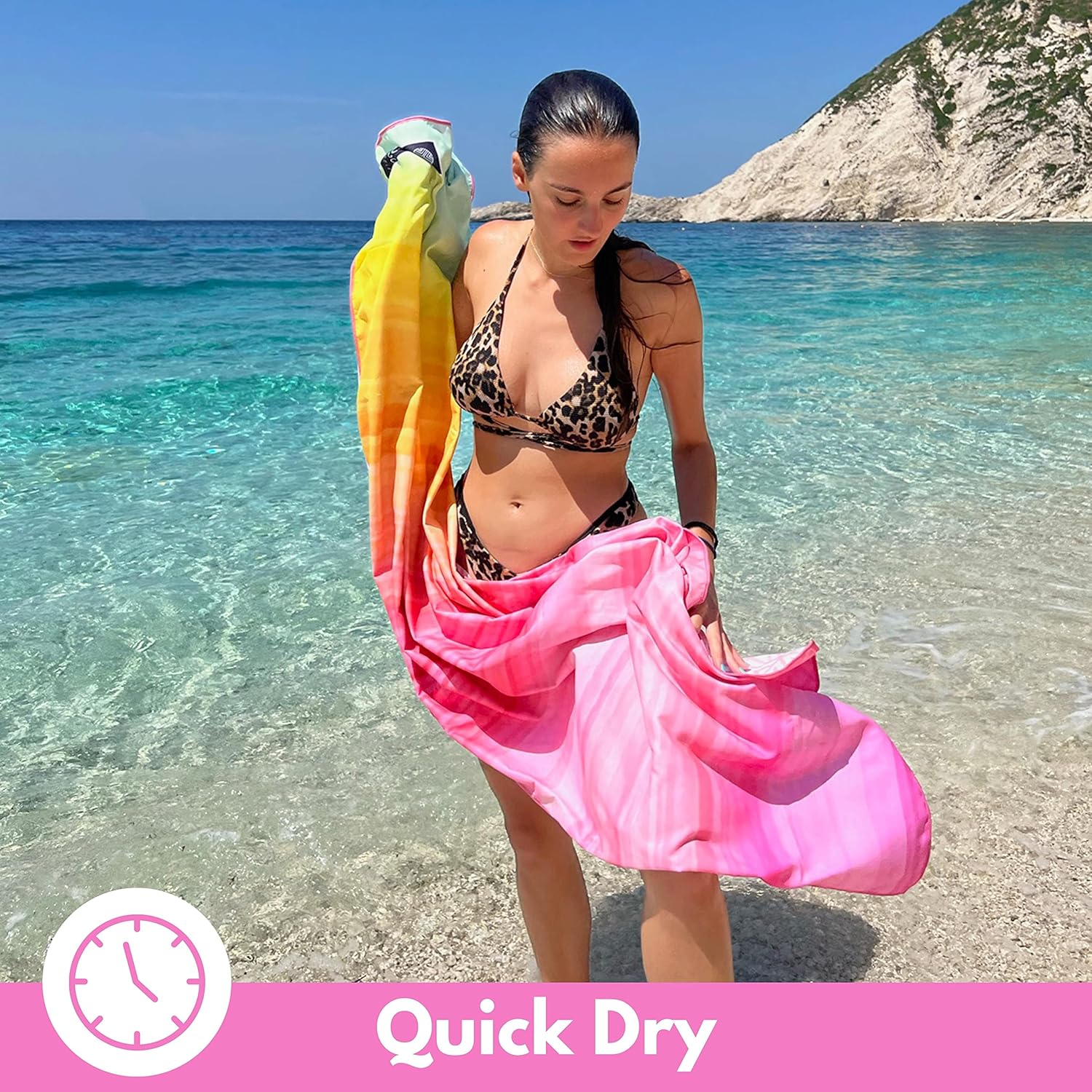 - Own the beach with our stunning 2 sided prints. Microfiber is a thin, ultra absorbent material. Super convenient to pack and carry. Maximize space in your luggage and closet with these compact and lightweight travel towels