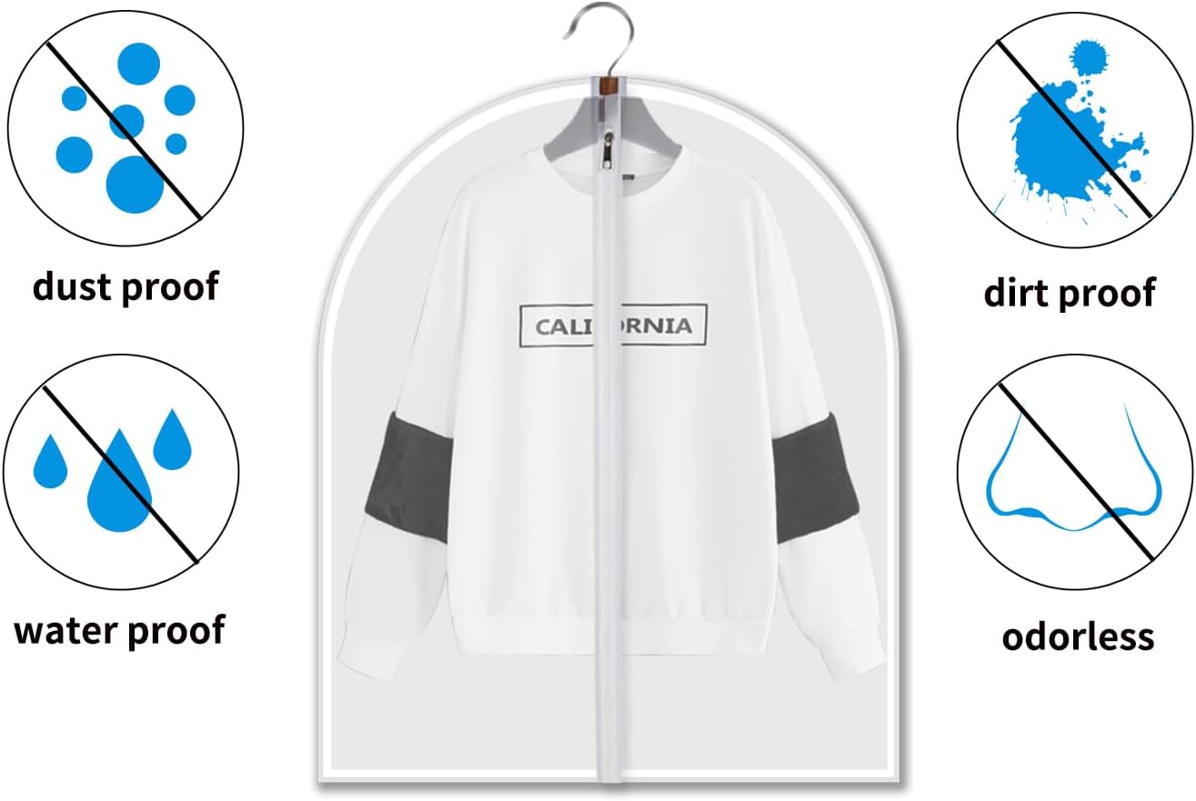 - ✅【Waterproof and Breathable Fabric】: Made of soft PEVA material. Washable, lightweight, breathable and lifetime use. Dust and water resistant, keep your clothes away from dust, damp, pleats and hair of pets. It can protect your clothing from dander, keeping your clothes fresh and wrinkle free. Translucent design, clothes can be easily seen and take out from the cover.