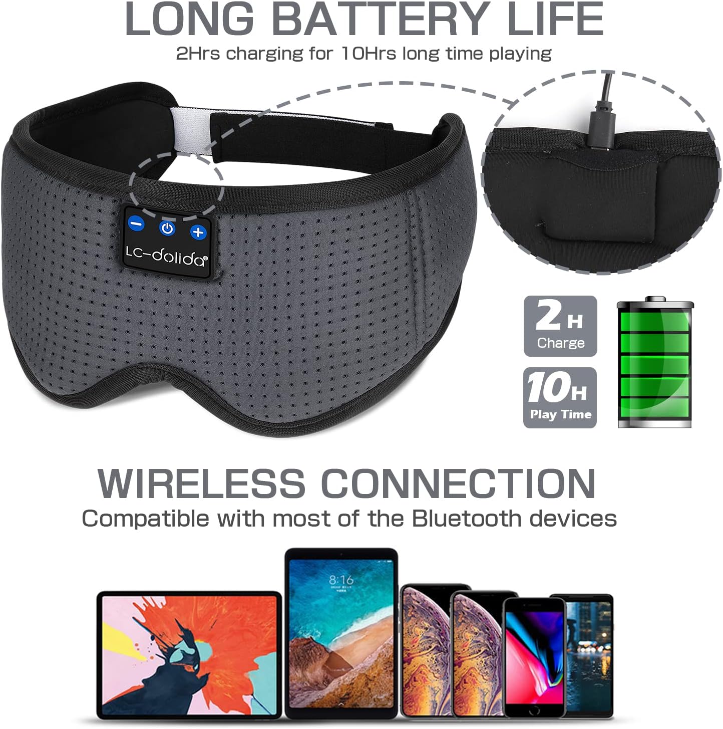 - 【Cool, Soft and 100% No Pressure on The Eyes】LC-dolida sleep headphones use memory foam with smooth ice silk lining. It's very lightweight and Skin-friendly, Breathable fabric is comfortable to wear, no more bulky mask, you could hardly feel that you are wearing anything when you fall asleep. Help you get into sleep rapidly and Wakeup refreshed and energized! Ideal for insomnia, migraine headaches and dry-eye sufferers