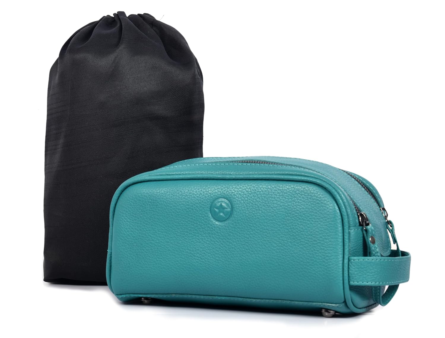 - **SPACIOUS AND VERSATILE - Double Zipper Closure Compartment | One External Zippered Pocket | Leather Strap Handle| Waterproof Lining | Makes It Smooth And Easy To Groom Yourself While Traveling.