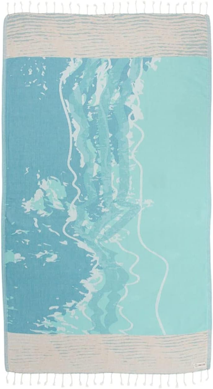 Sand Cloud Turkish Beach Towel - Sand Free - 100% Organic Turkish Cotton Yarn - Quick Dry Towel for Beach, Picnic Blanket or Throw - As Seen on Shark Tank - Waves