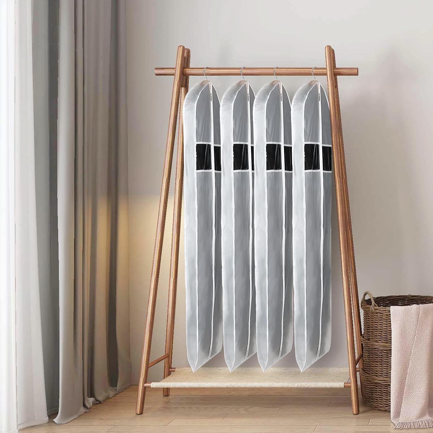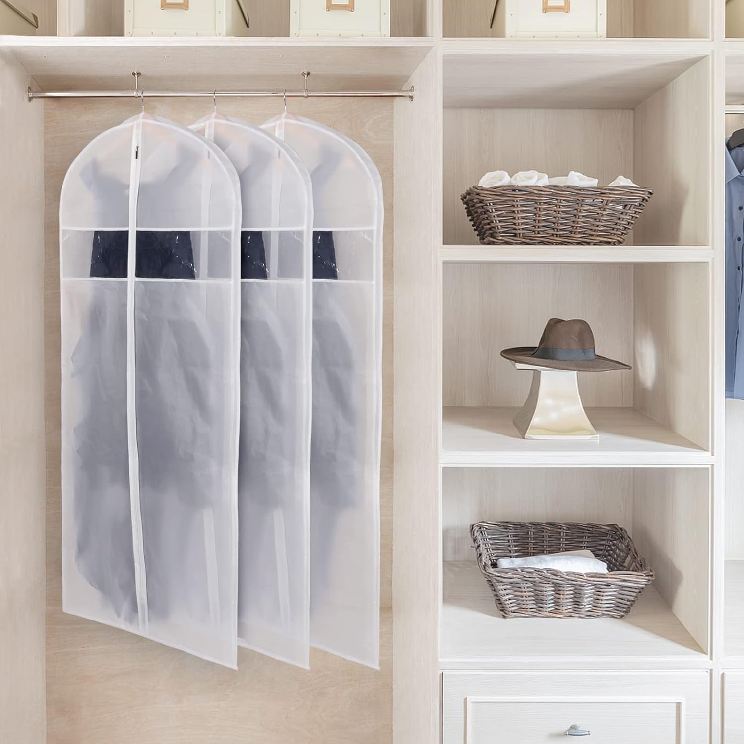 - 【Clear Window and Reused 】 The breathable dress garment bag with clear window allows you to see which dress is inside without opening; The coat bags for closet storage also can be washed, it can reuse and lasts longer than dry cleaning bags.