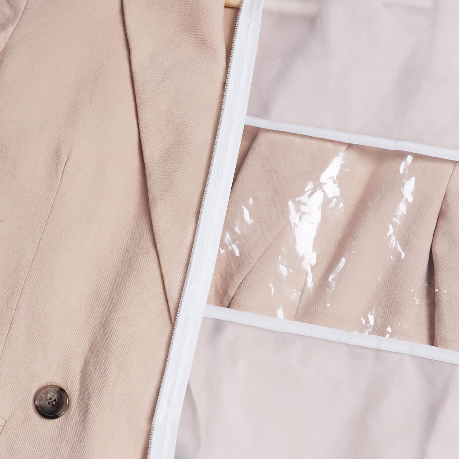 - 【3" Gusset and Washable 】 Coat covers for closet with 3" gusset for 2-4 clothes with no squeeze and wrinkle, even for litter puffy maxi dresses, each of your suits, dresses and gown can have their own cover and room to breathe; we added PVC opening on top of the bag, keep your favorite clothes dust free.