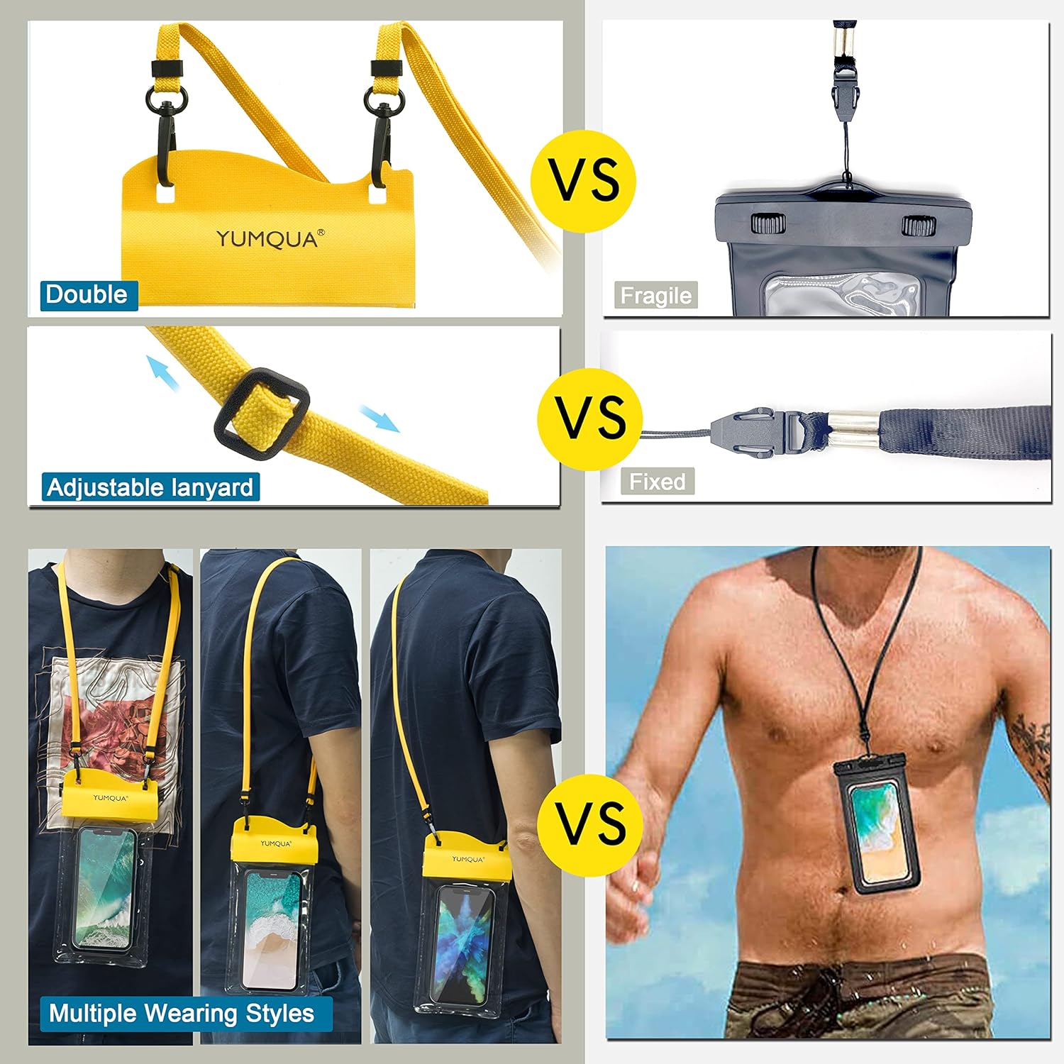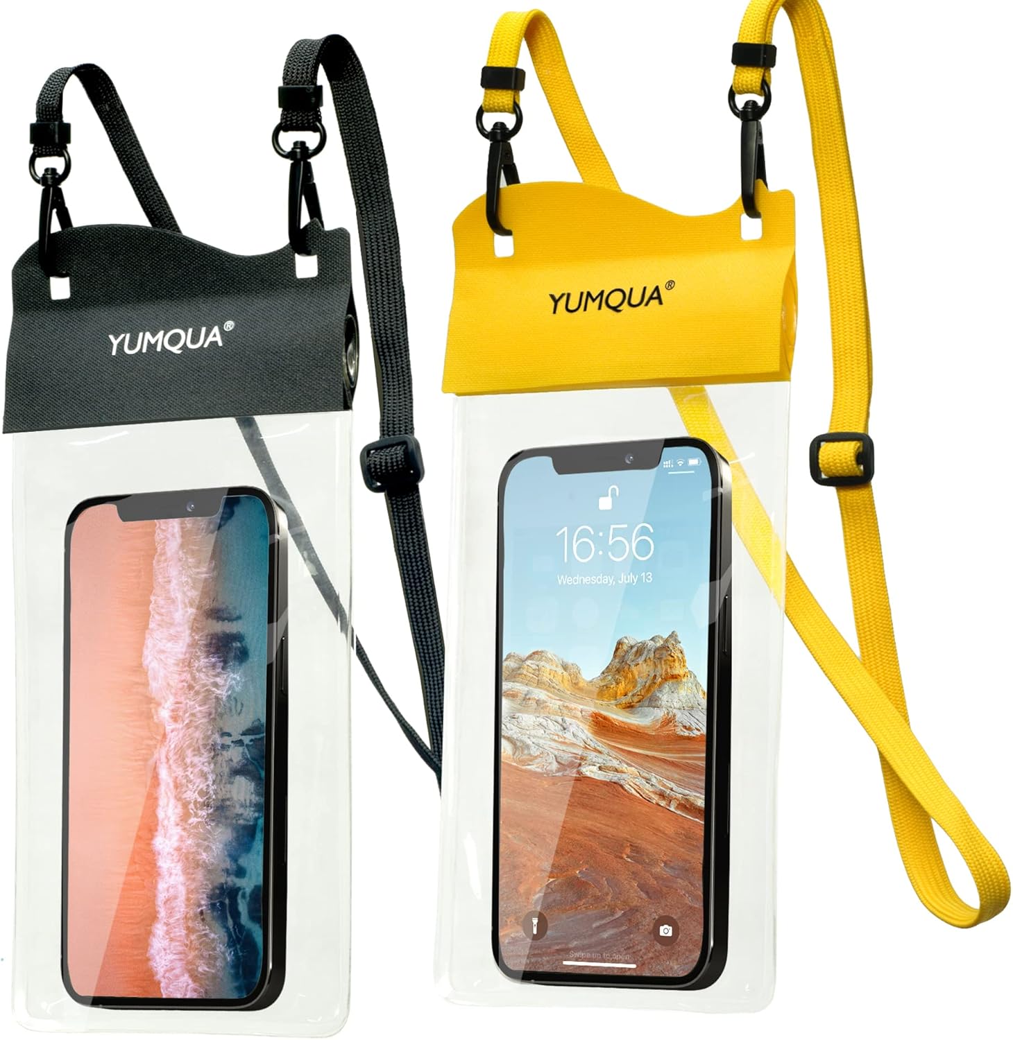 Large Waterproof Phone Pouch 2 Pack, IPX8 Waterproof Cell Phone Case Dry Bag Compatible with iPhone 15 14 13 12 Pro Max, Galaxy S23 Ultra S22 Pixel 4 XL Phone Up to 7.5", Black+Yellow
