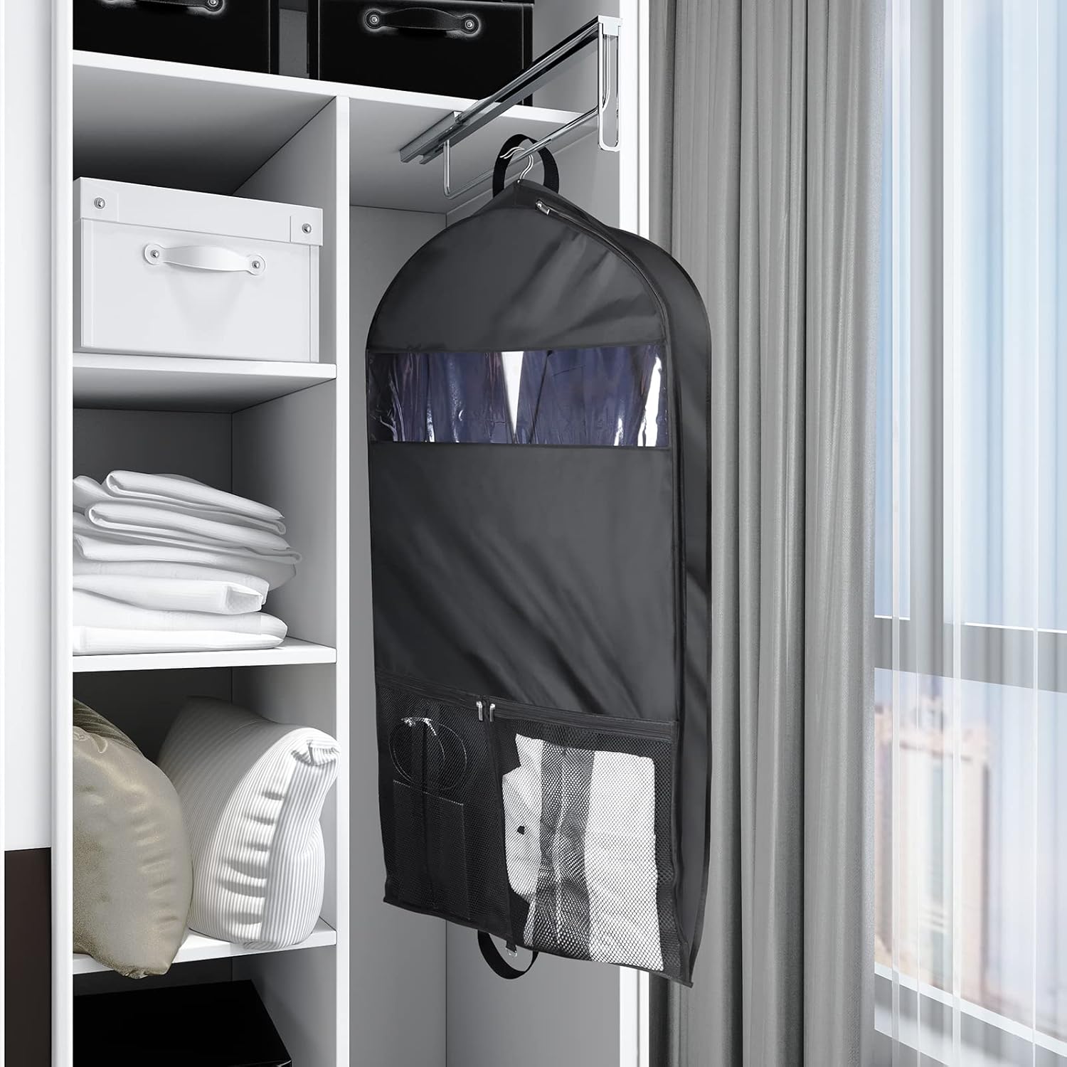 Univivi Garment Bags for Travel and Storage 43" Hanging Suit Bag Clear Suits Cover with Mesh Pockets for Coat, Shirt, Jackets, dresses