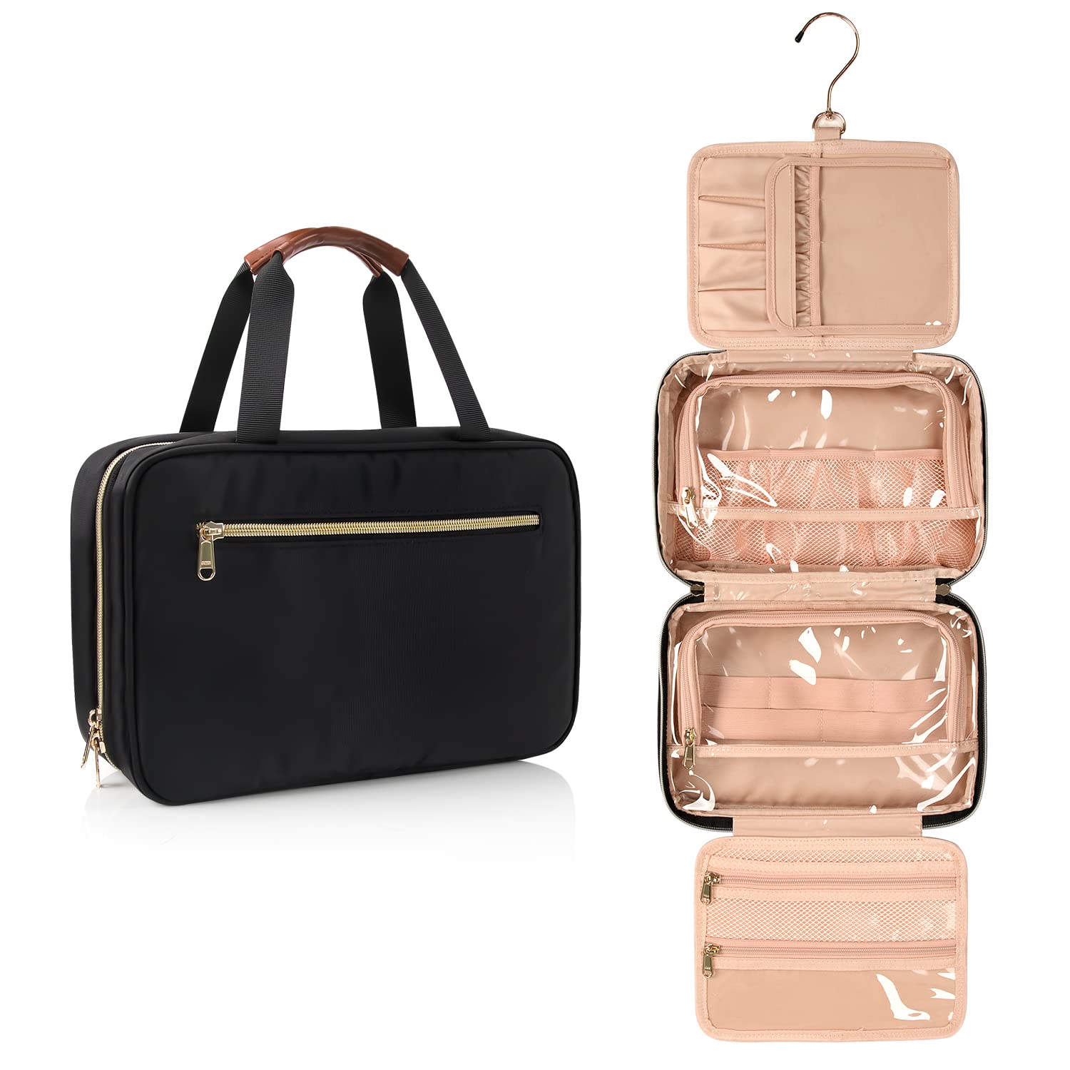 CUBETASTIC Hanging Travel Toiletry Bag, Portable Travel Makeup Bag with Handle, Waterproof Nylon Cosmetic Organizer Pouch with 360° Hanging Hook (B#-Black, Medium(Pack of 1))
