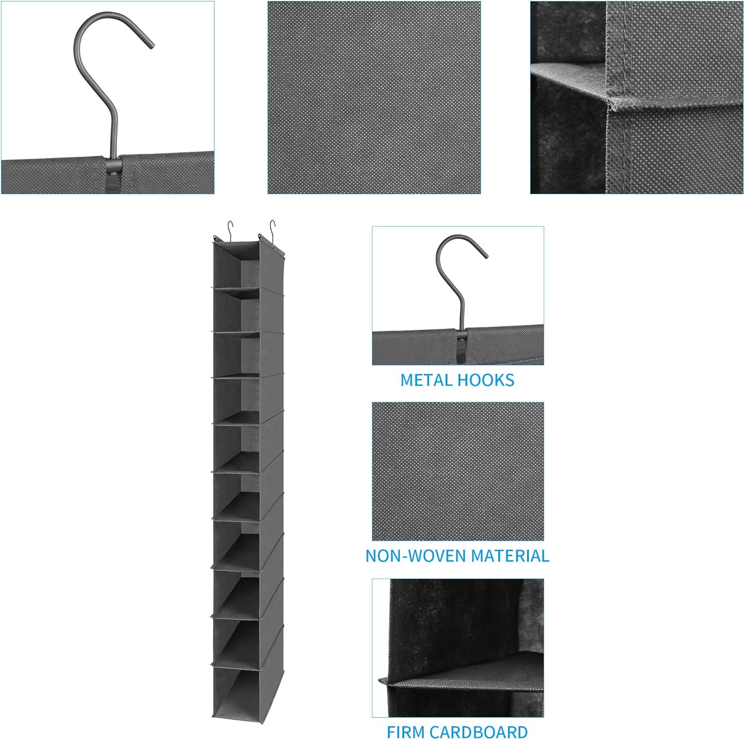 - Multipurpose: The hanging closet organizer is perfect for organizing closet, bedroom, laundry room, play room, college dorm room, used for small items like shoes, lingerie, socks, makeup, toys, office supplies, pet supplies and more.