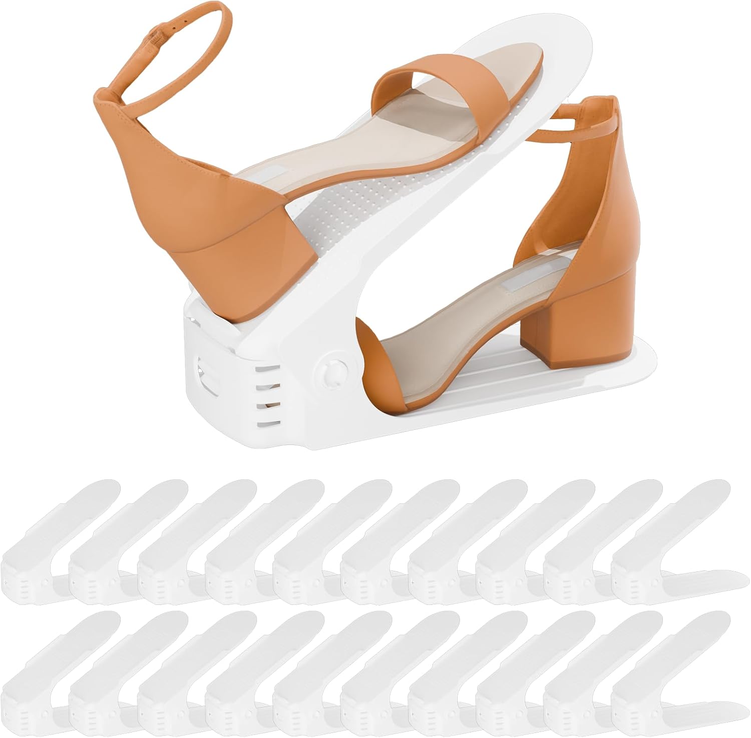 Shoe Slots Organizer, 20PCS Adjustable Double Layer Stack Shoe Rack, 50% Space-Saving Storage Rack Holder, White