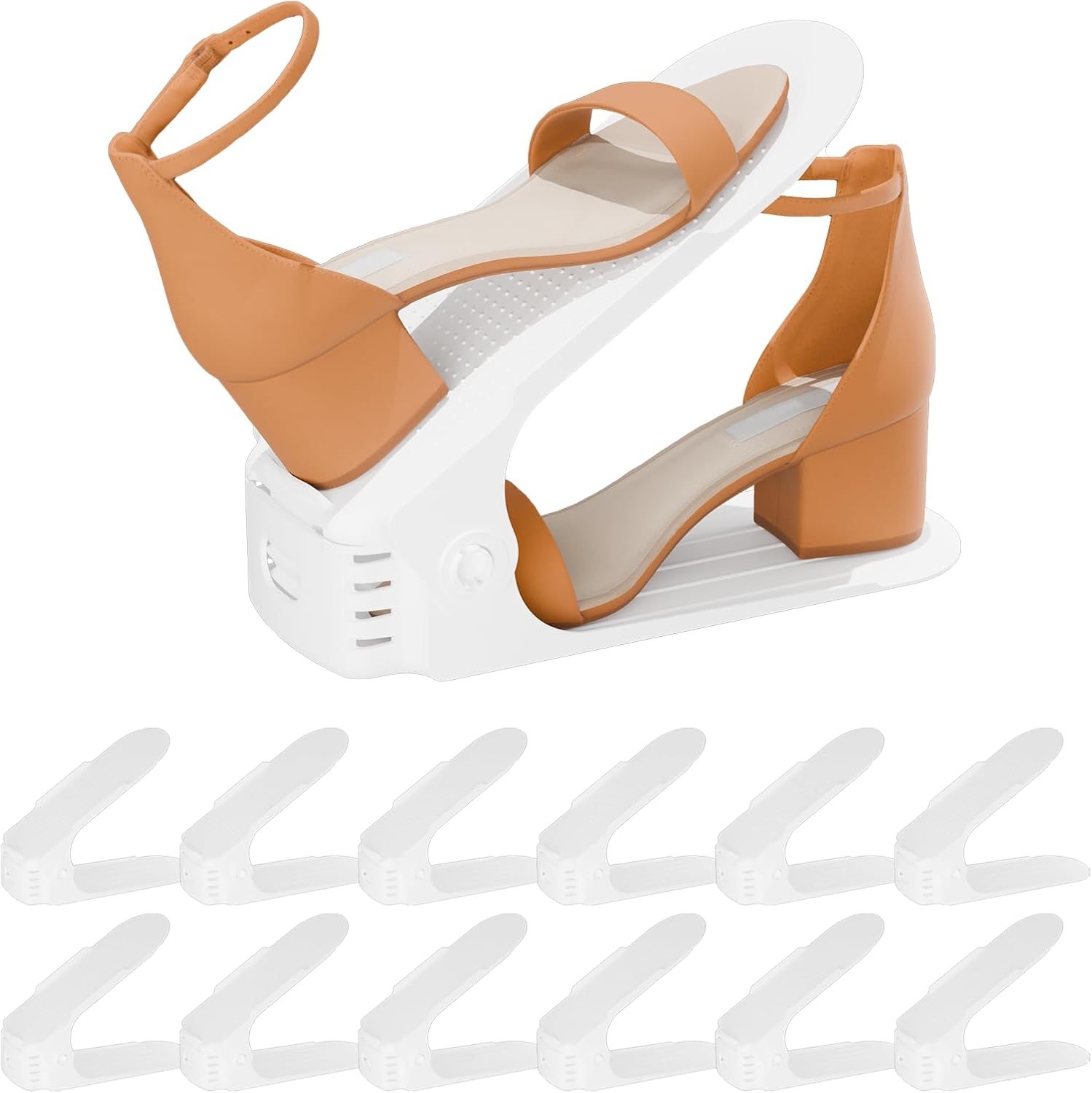 Shoe Slots Organizer, 12PCS Adjustable Double Layer Stack Shoe Rack, 50% Space-Saving Storage Rack Holder, White