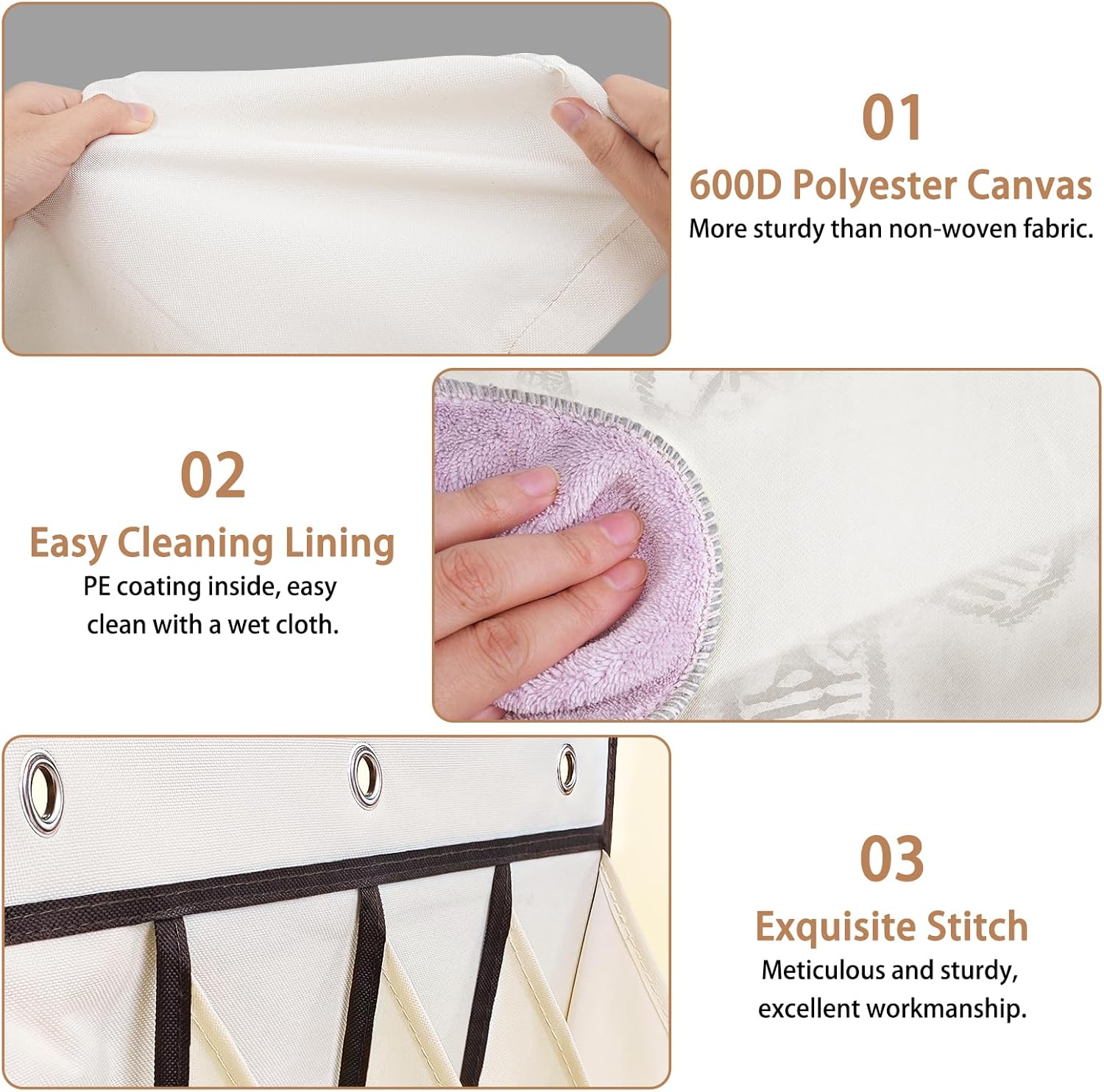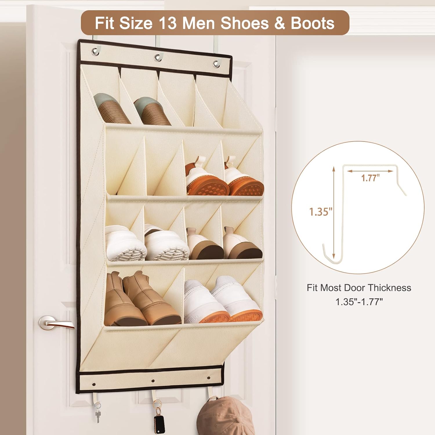 FENTEC 2 Pack Over the Door Shoe Organizer, Hanging Shoe Organizer, 28 Large Deep Pockets Door Shoe Rack with 6 Hooks Shoe Organizer for Shoes, Sneakers, and Home Accessories, Beige