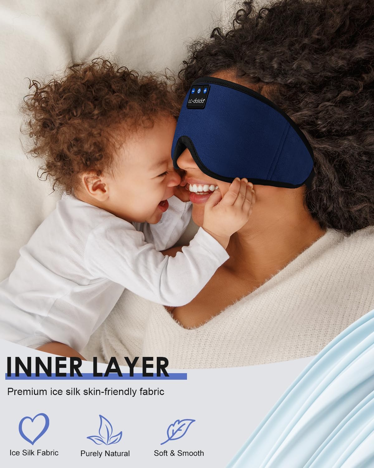- 【REAL ICE SILK FABRIC】Bluetooth sleeping headphones sleep mask is made of real ice silk, super soft just as smooth as baby's skin. The bluetooth sleep eye mask is the perfect Sleeping Headphones for side sleepers, choose LC-dolida sleeping bluetooth headphones, fall asleep fast, stay asleep and have a sweet dream