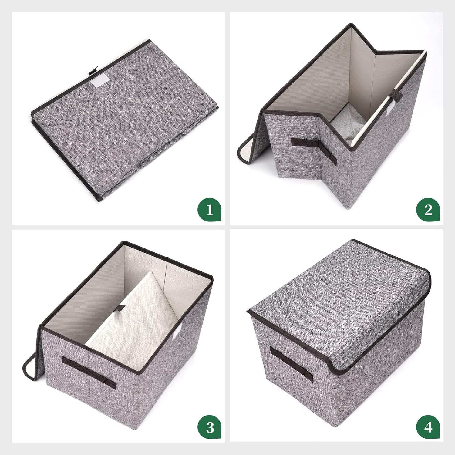 - 【Premium Quality】 -These fabric storage bins with lids are made of durable and breathable linen fabric with the high quality cardboard on the sides and bottom. The fabric is eco-friendly and durable, with no odor. The inner 2.2mm thick cardboard maintains fabric storage box shape and structural integrity. Both handles are sewn through cardboard to make this decorative storage boxes rigid enough to hold a heavy load.