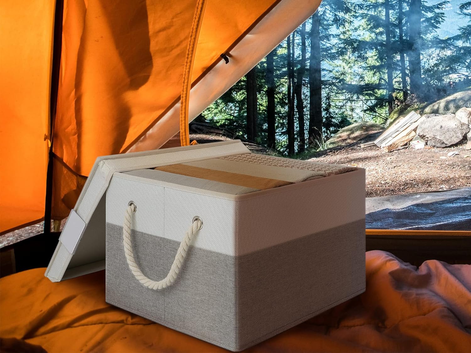 - STURDY ENOUGH: The closet organizer bins with lids are made of sturdy fabric with thickened cardboard on each side, giving a solid and neat facade for long-term use. Decorative storage boxes with lids have a large capacity and deep enough that can be used as storage clothes, pet products, laundry, towel, blanket, bedsheet and more.