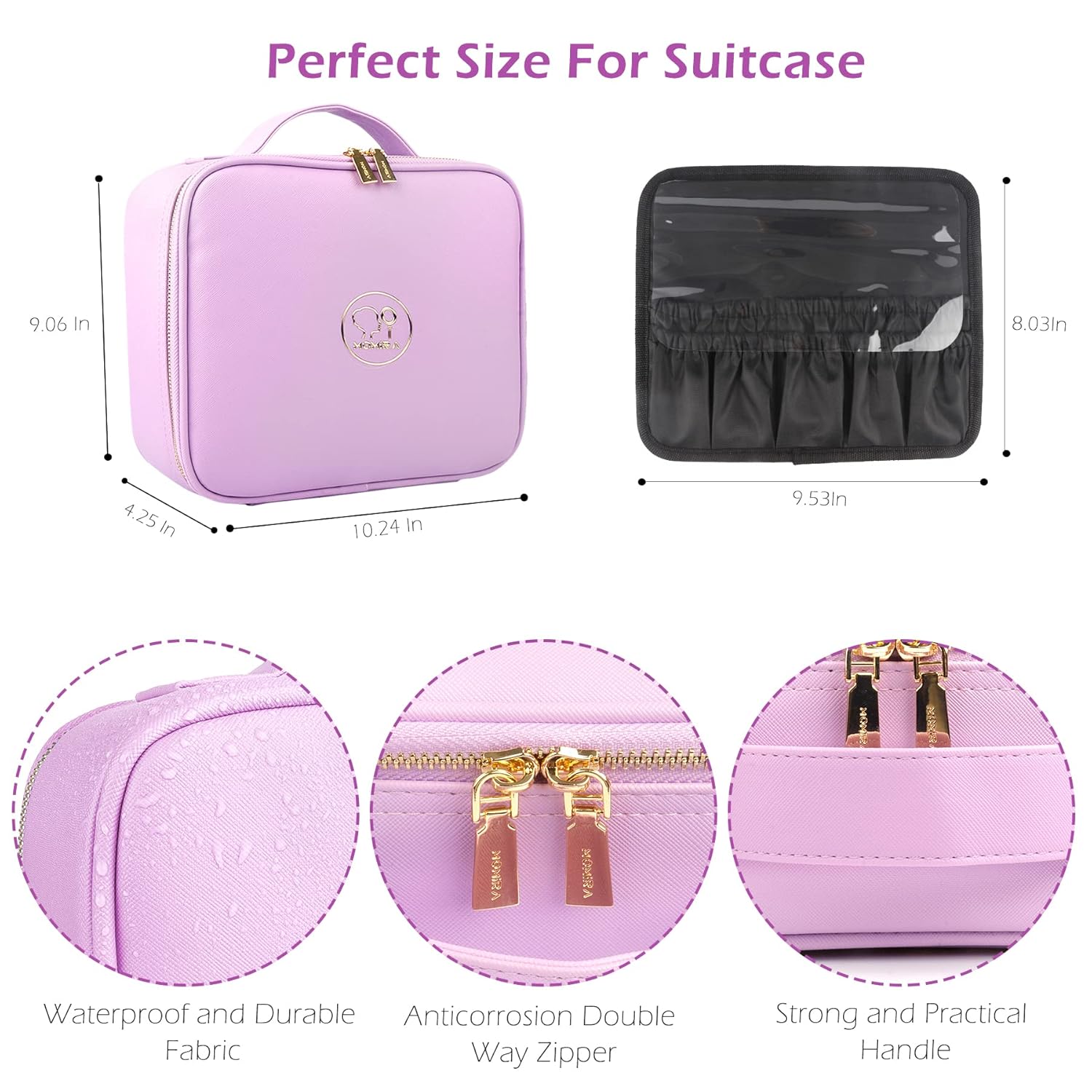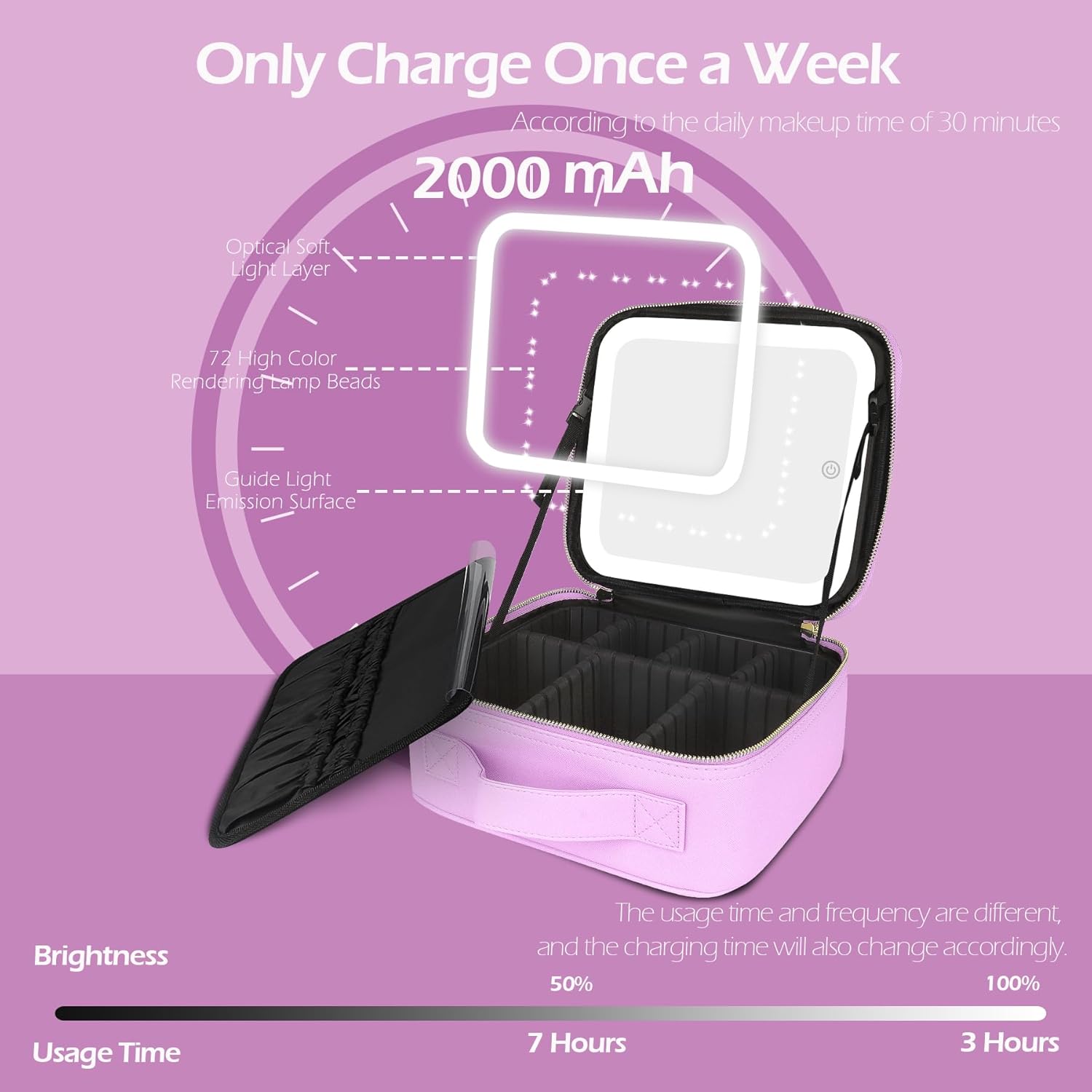 MOMIRA Travel Makeup Bag Cosmetic Bag Makeup Organizer Bag with Lighted Mirror, Adjustable Brightness in 3 Color Scenarios, Waterproof Makeup Train Case, Gift for Women - Purple