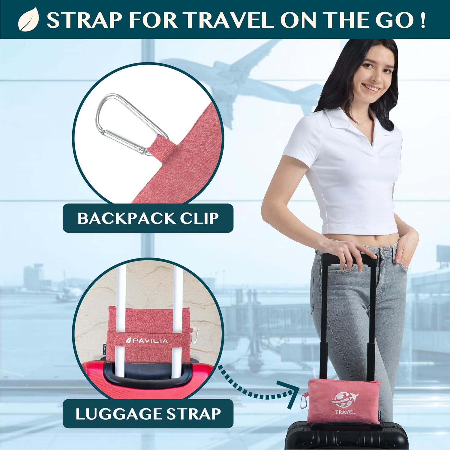 - ATTACH TO LUGGAGE OR BACKPACK: The airplane blanket features a luggage sleeve strap and D-ring clip, allowing you to securely attach the small thin blanket for travel to your luggage and travel bags