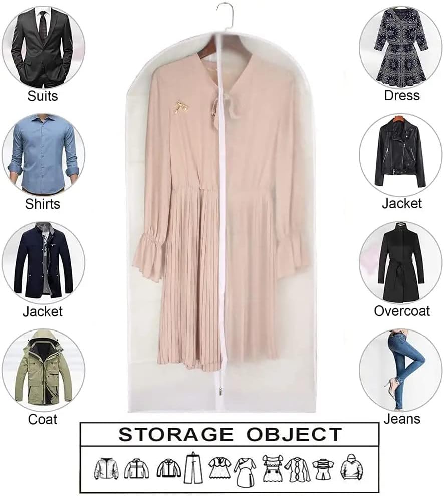 - ✅【DUST-FREE GARMENT COVER】: keep your favorite & expensive clothes dust-free and fresh. With these coat bags for closet storage, each of your suites or dresses can have its own cover and room to breathe. The translucent garment bag can be folded in a small size easily, is very easy to store when you don't use them, and save lots of space.