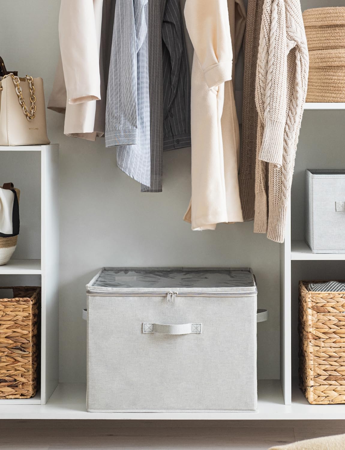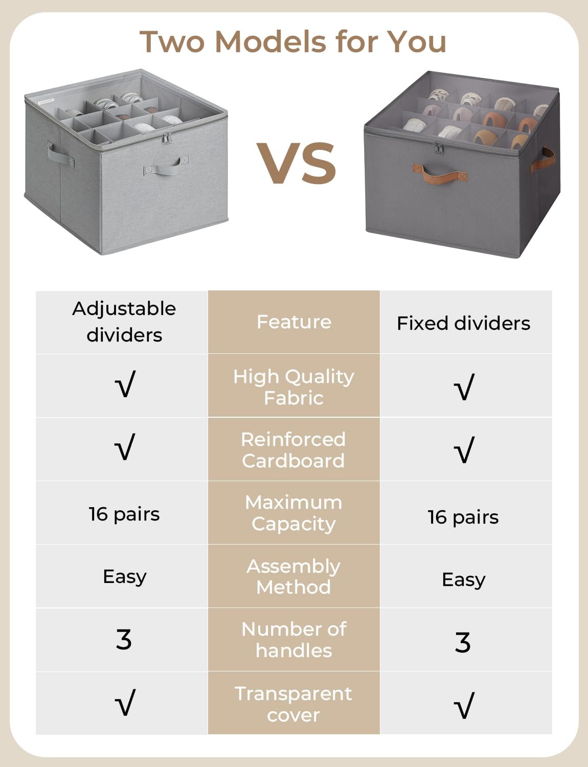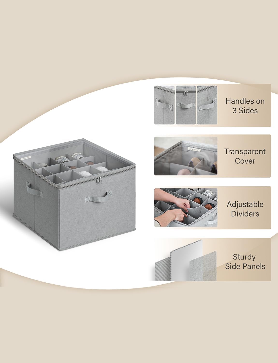 - The internal polypropylene dividers of this shoe storage organizer for closet are attached to the side panels, making it easy to customize the compartment sizes and keeping shoes securely in place during storage.