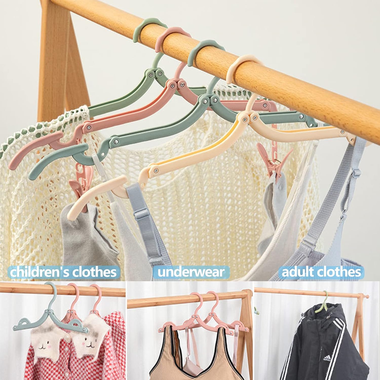 24 PCS Foldable Non Slip Plastic Clothes Hangers with Clips - Travel Accessories Drying Rack, 4 Colors