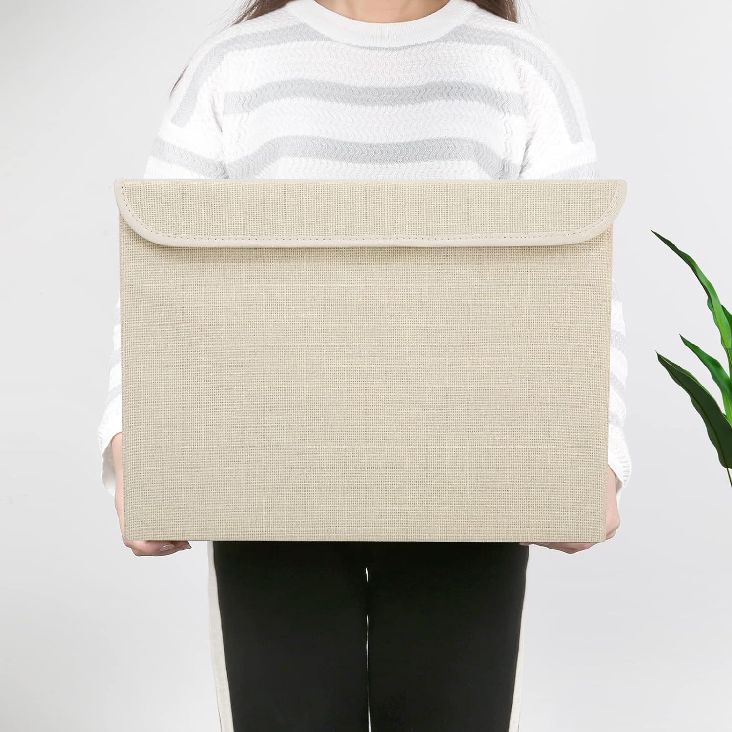 Large 42 Quarts Collapsible Stackable Storage Bins Cube with Lids [3-Pack] Foldable Fabric Linen Storage Boxes, Closet Organizer Baskets with Label for Home (16.7 x 12 x 12, Beige)