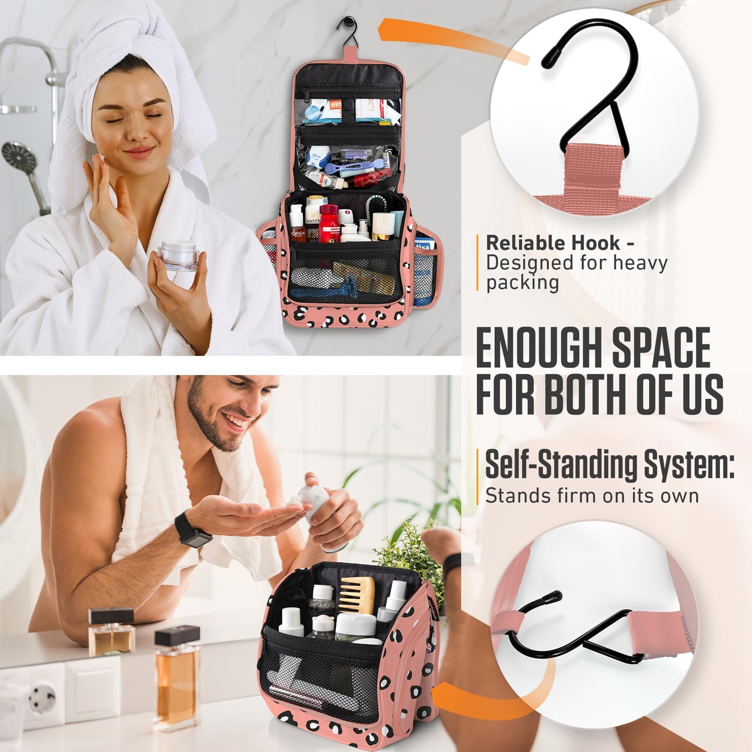 VENTURE 4TH Hanging Travel Toiletry Bag for Women & Men - Travel Organizer with Expandable Compartments & Removable Clear Pouch for Toiletries (Pink Cheetah)