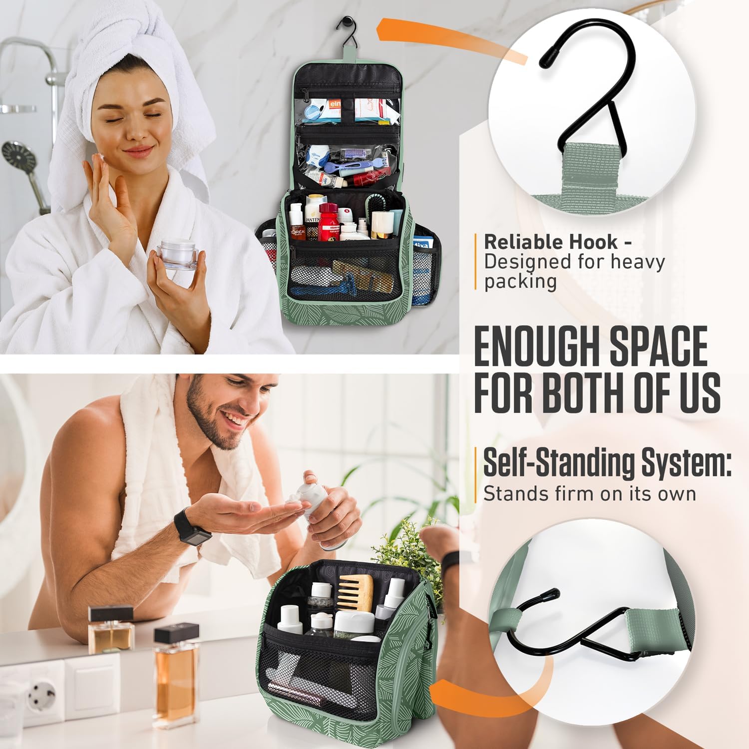 VENTURE 4TH Hanging Travel Toiletry Bag for Women & Men - Travel Organizer with Expandable Compartments & Removable Clear Pouch for Toiletries (Green Leaves)
