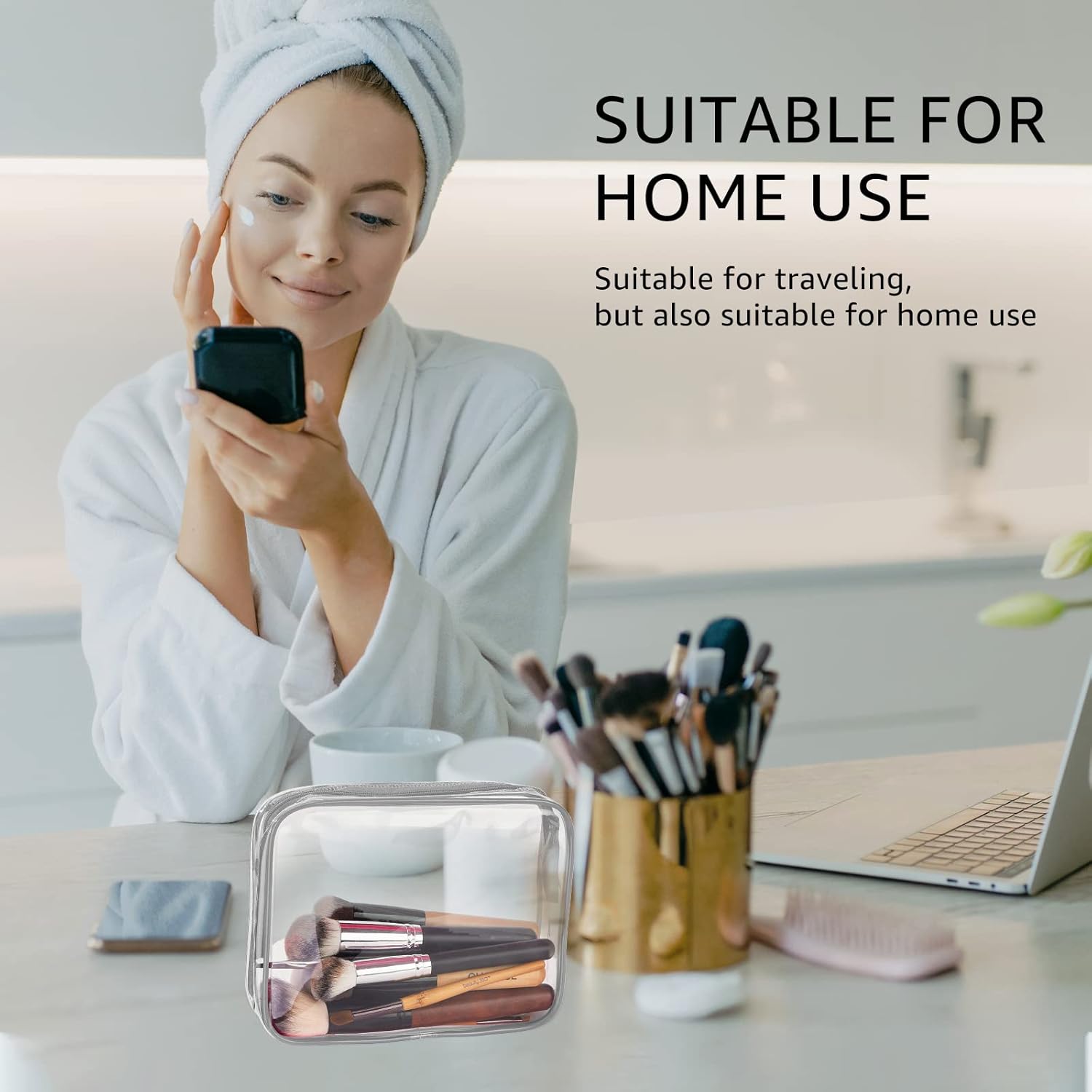 • Improved 0.6mm thickened transparent PVC material, softer and more pliable, durable and reusable; 3 PACKS 3 DIFFERENT SIZES: 1x Large clear toiletry bag (11.8" x 3.9" x 8.7"), 1x Medium clear makeup bag (9.5" x 1.9" x 7.9"), 1x Small clear cosmetic bag (7" x 1.6" x 5.5")