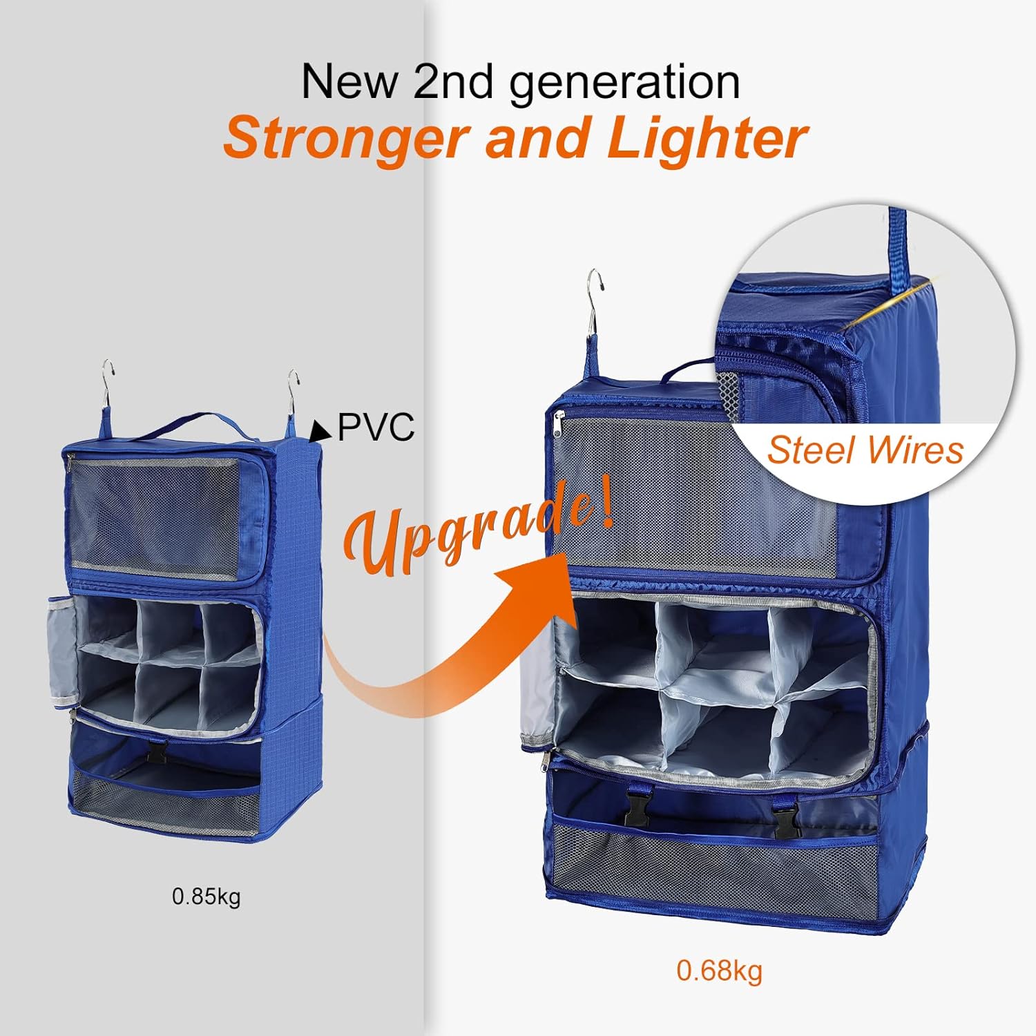 TABITORA Travel Portable Hanging Shelves Closet Organizer Packing Luggage Storage with Multifunctional and Foldable Invisible Compartment,Lightweight, for Suitcase, RV,Closet…Blue,XXL