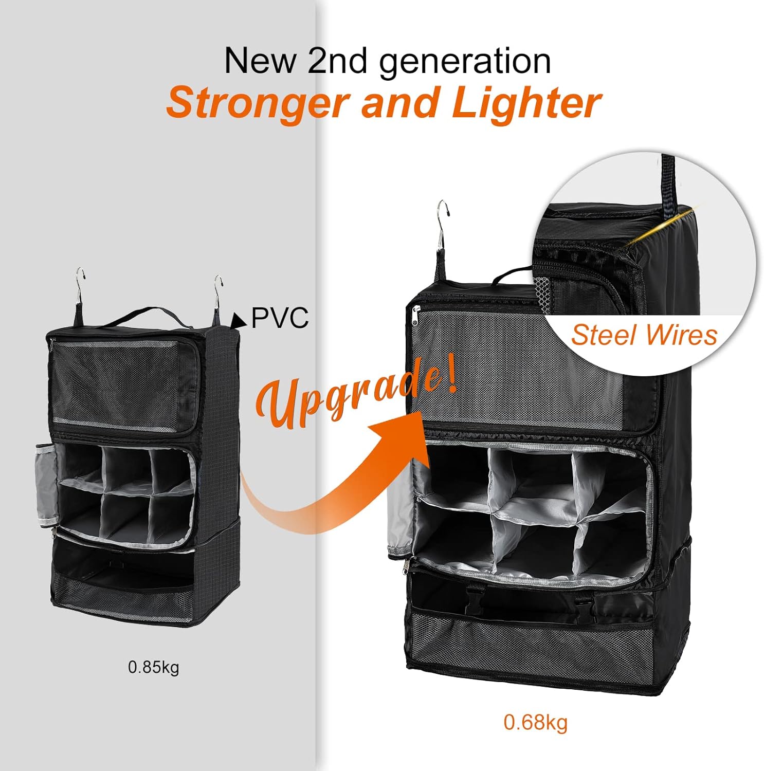 TABITORA Travel Portable Hanging Shelves Closet Organizer Packing Luggage Storage with Multifunctional and Foldable Invisible Compartment,Lightweight, for Suitcase, RV,Closet…Black,XXL