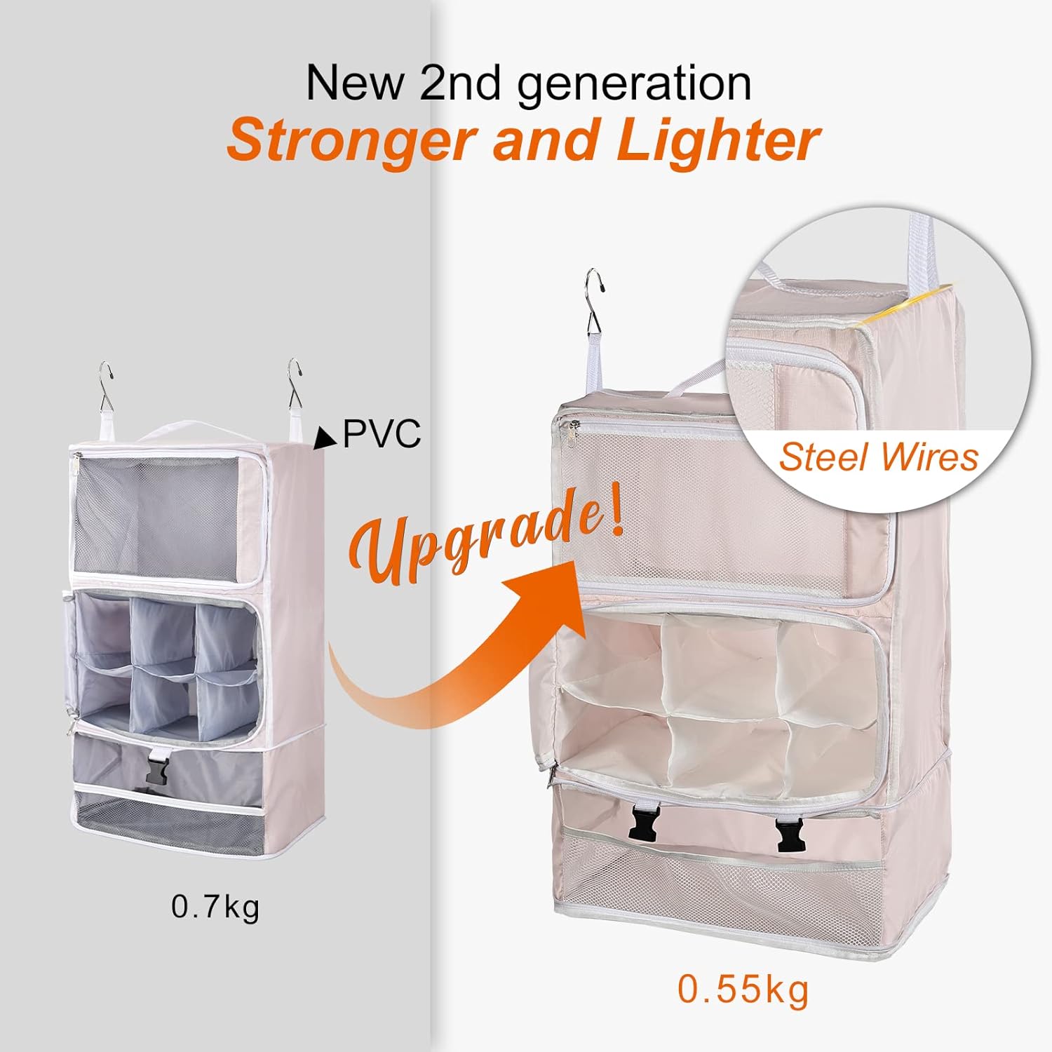 - 【Unique Hanging Design】The organizer is designed for easy setup and can be hung from a closet rod or any other sturdy object using the included hooks. This hanging shelf organizer is perfect for suitcases, RVs, and closets, helping you save space, keep your clothes organized, and prevent wrinkles. With this convenient design, you can spend more time enjoying your trip and less time worrying about packing and unpacking your luggage and suitcase.